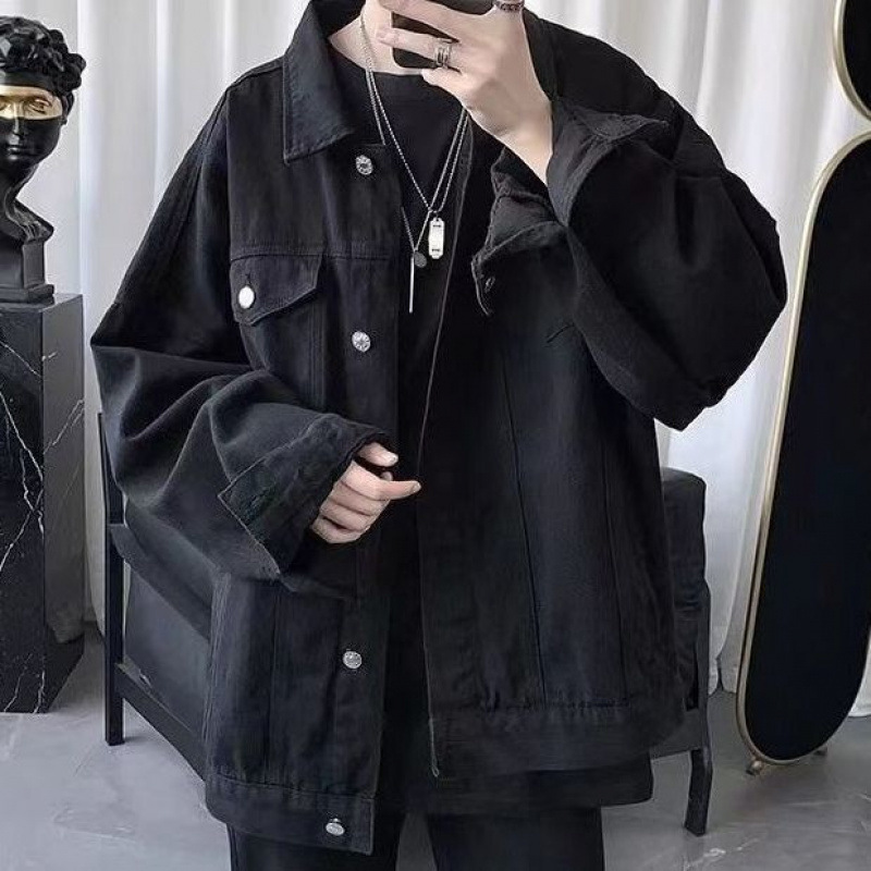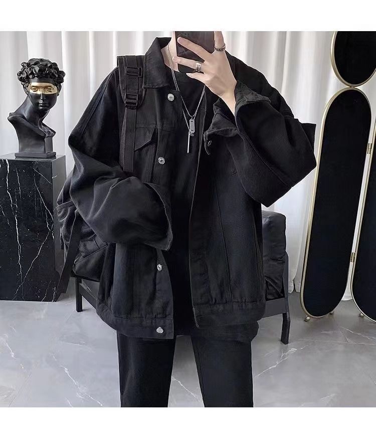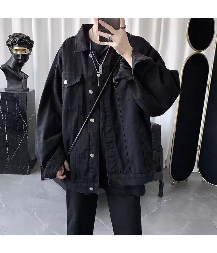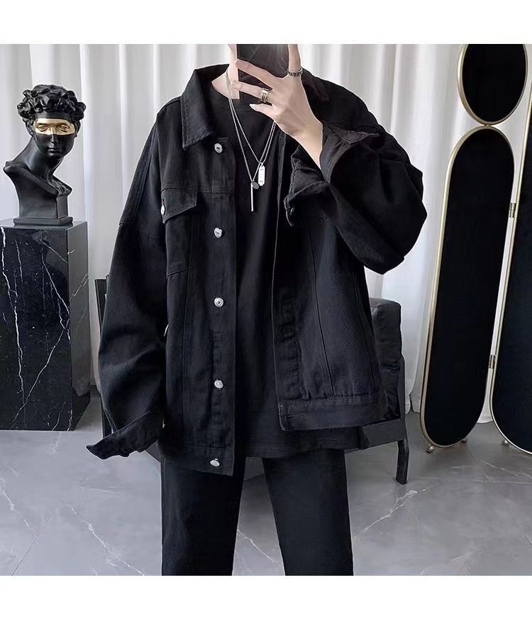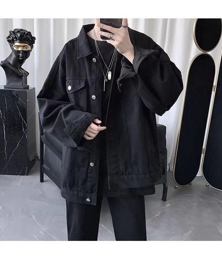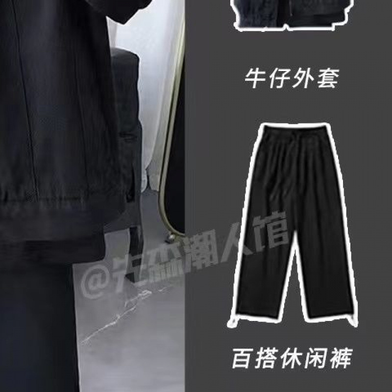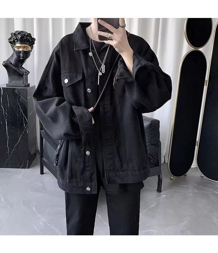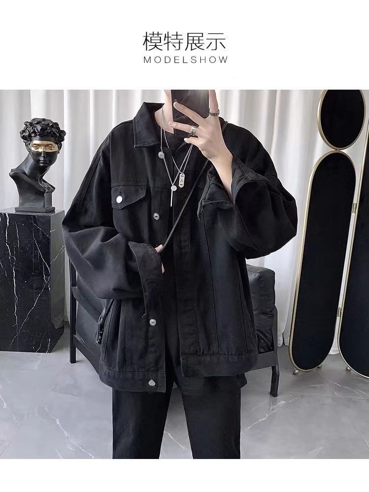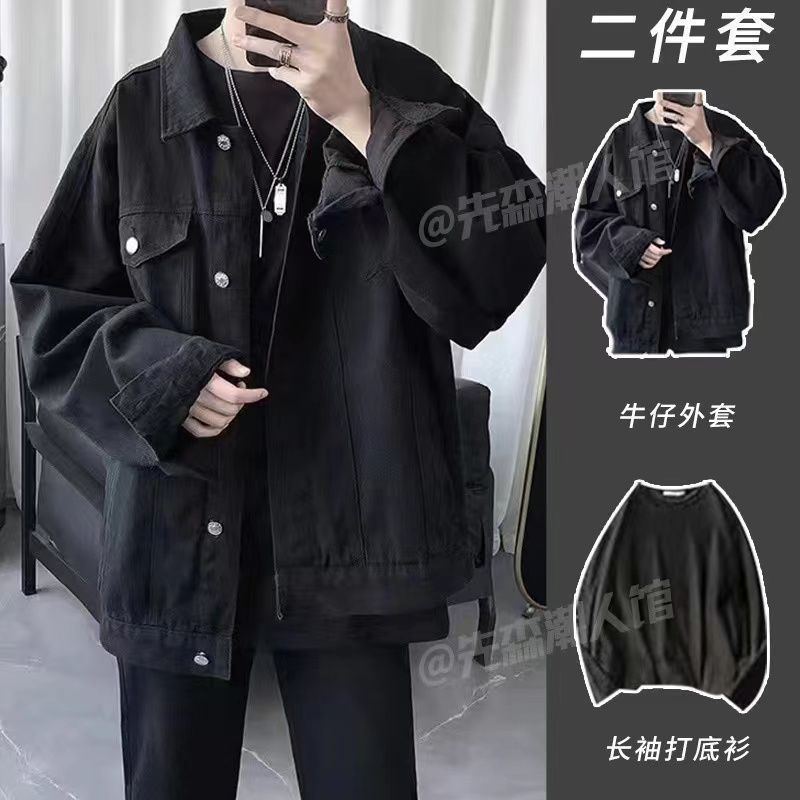 [3 피스 세트], 스프링 코트 하이 엔드 블랙 데님 코트 남자 루즈 재킷 남자 매칭 세트스토어 가기