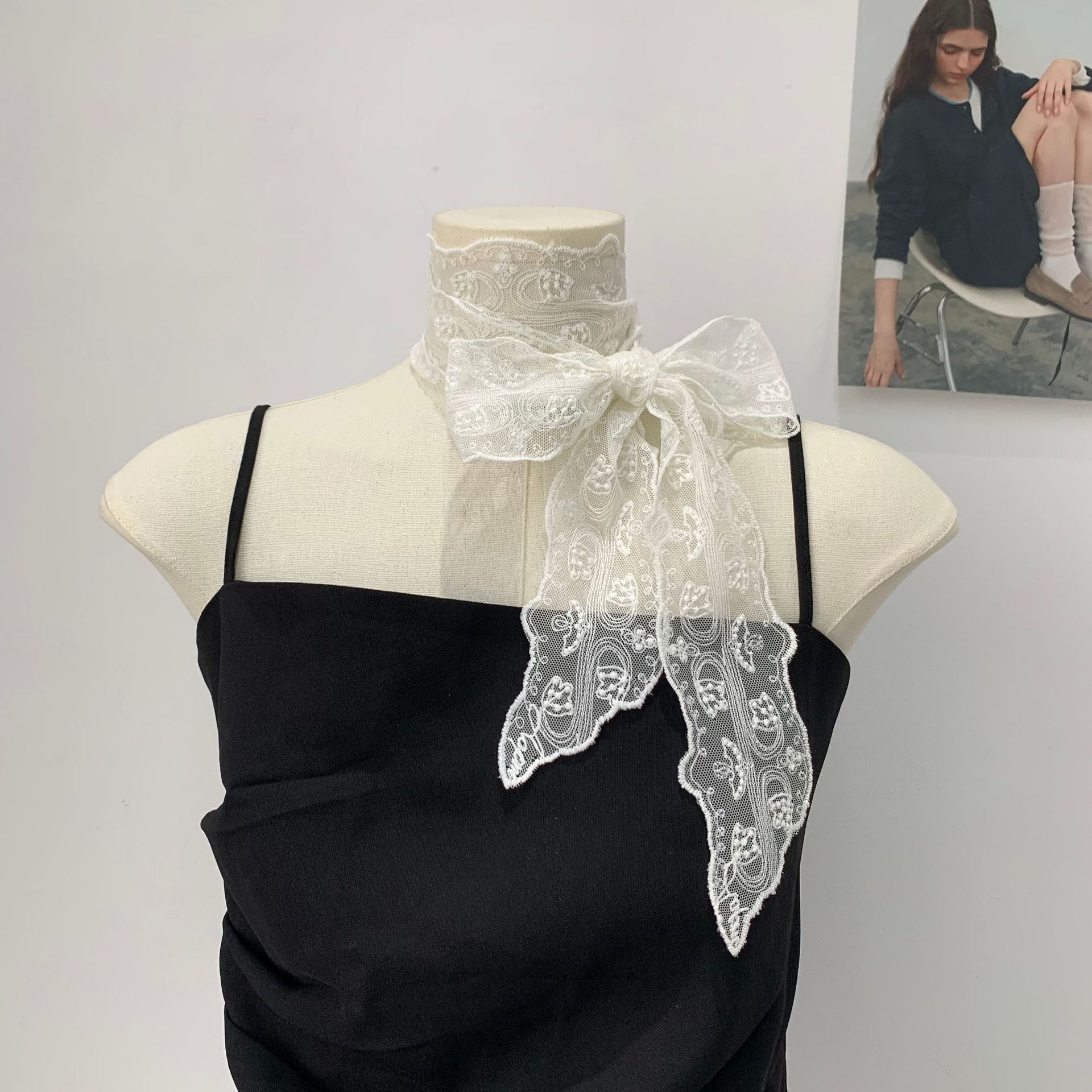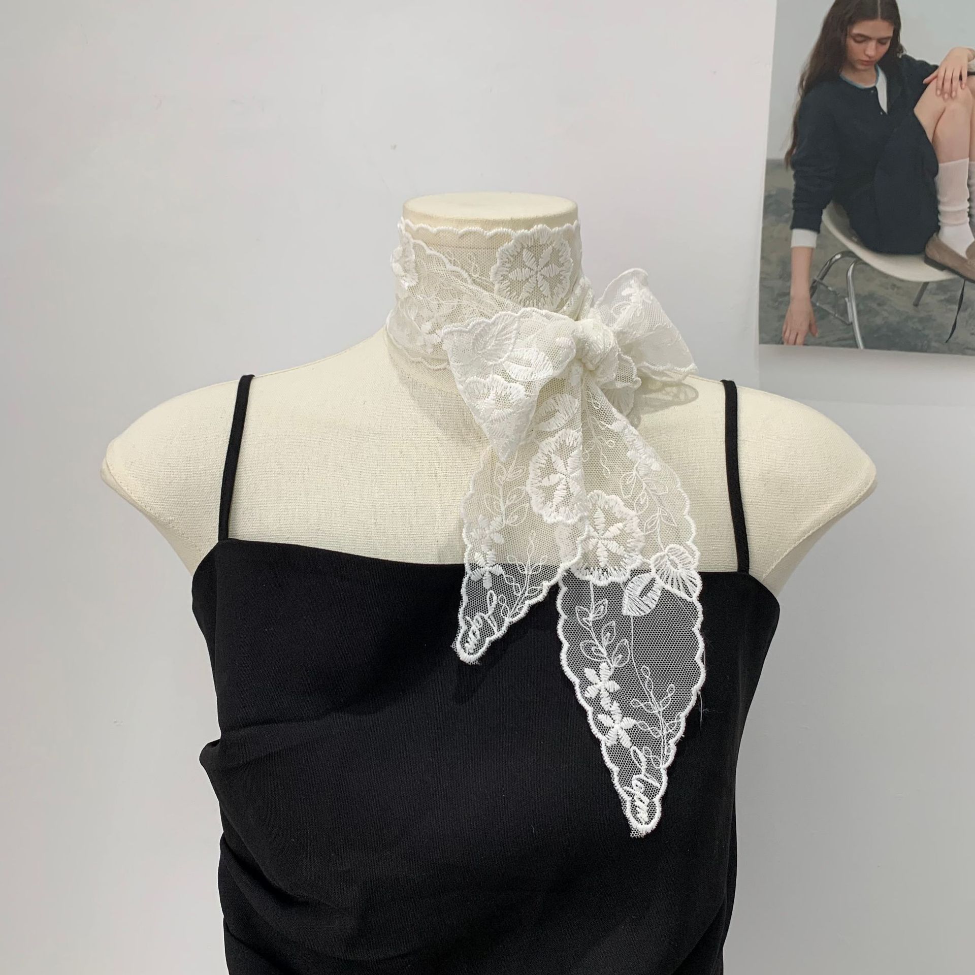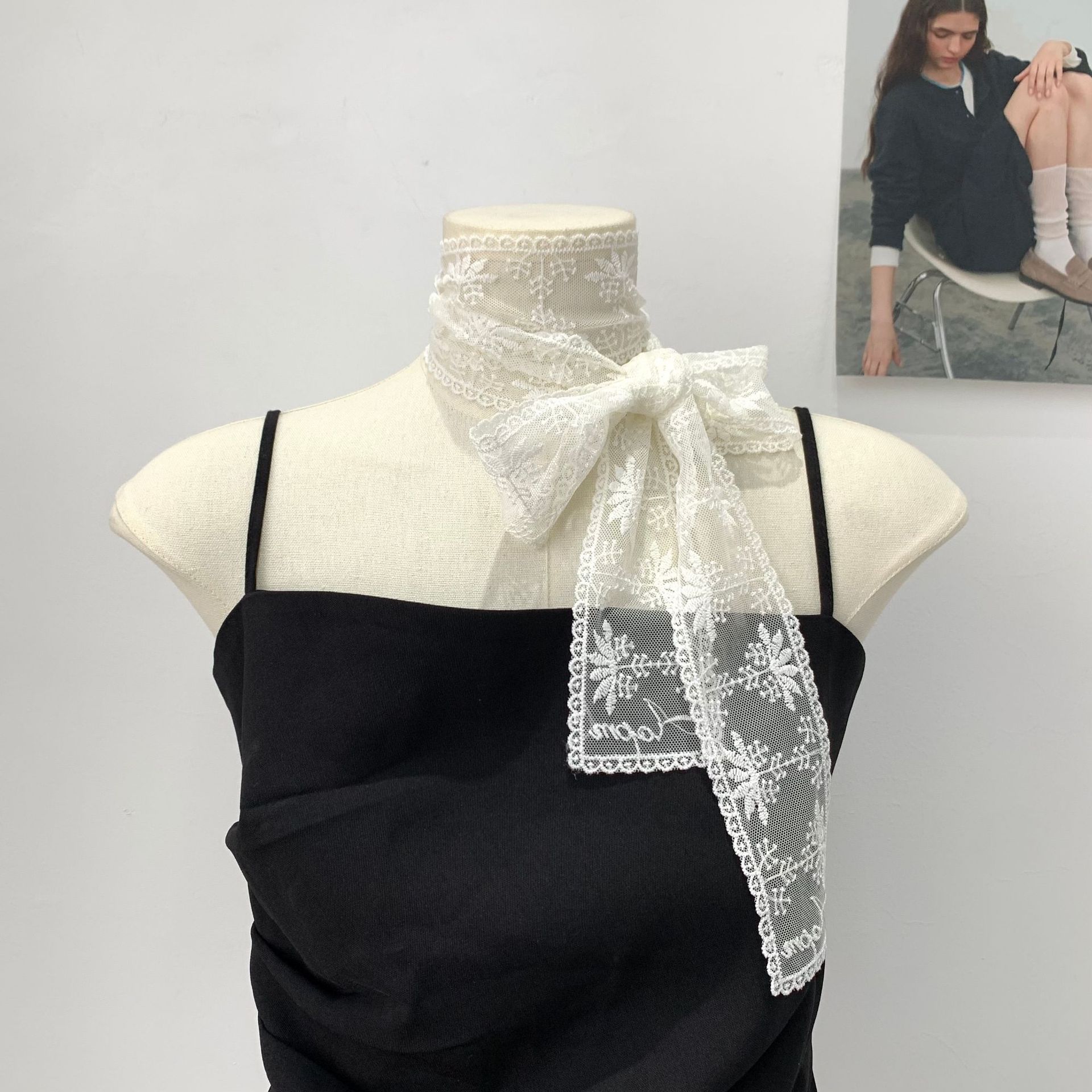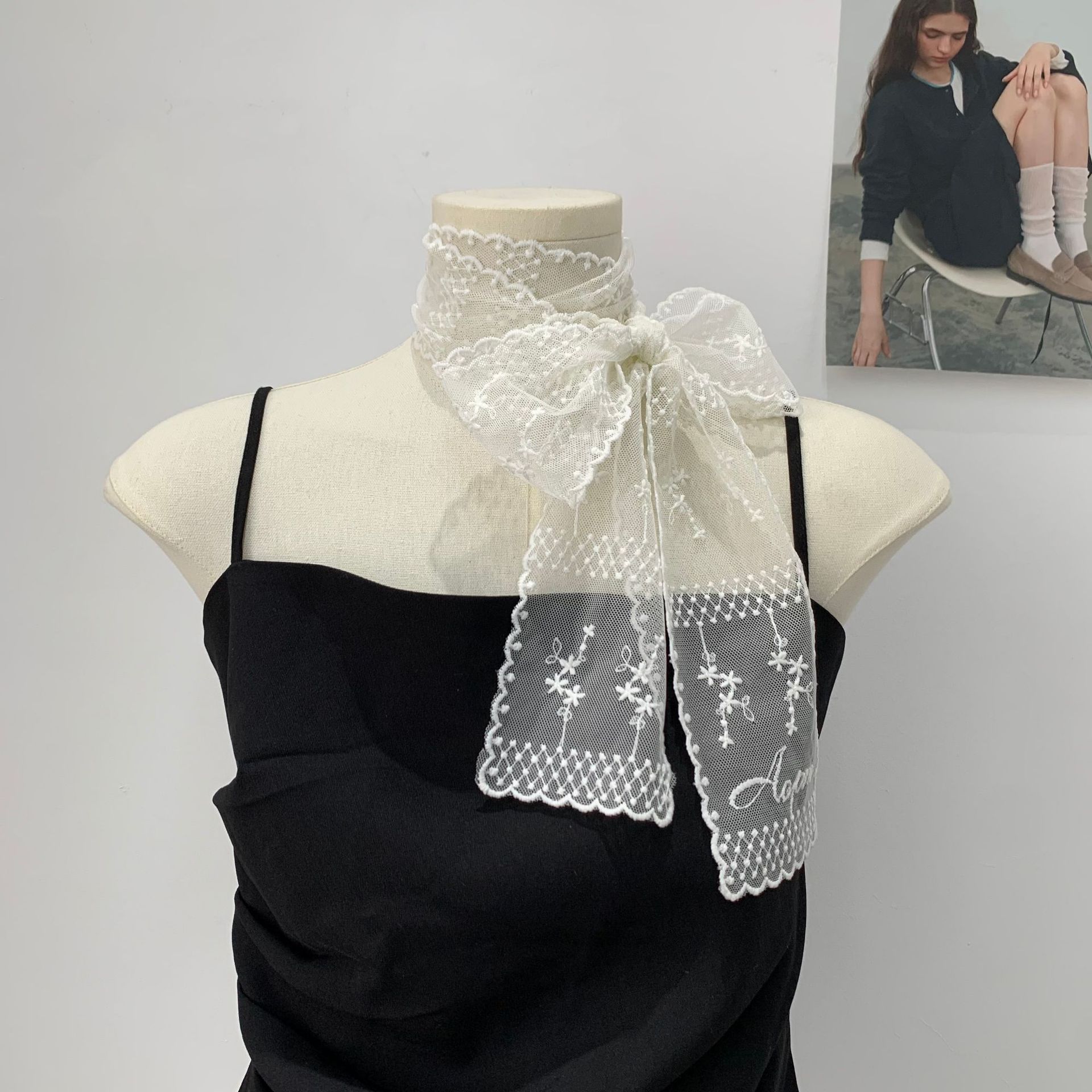 프랑스 스타일 Instagram 스타일 세련된 레이스 리본 실크 스카프 유행 올 매치 콜라본 목 스카프 틈새 여성 스카프스토어 가기