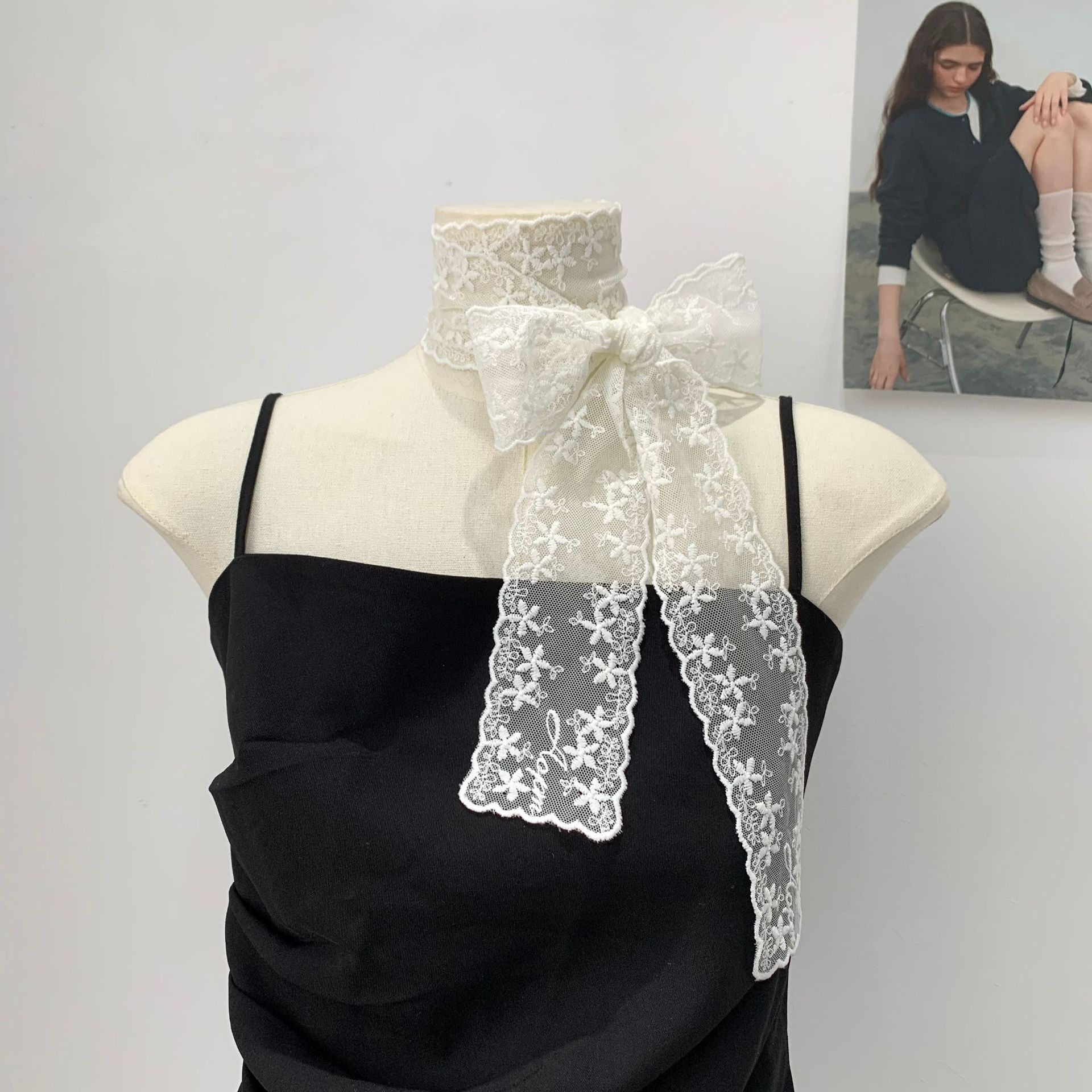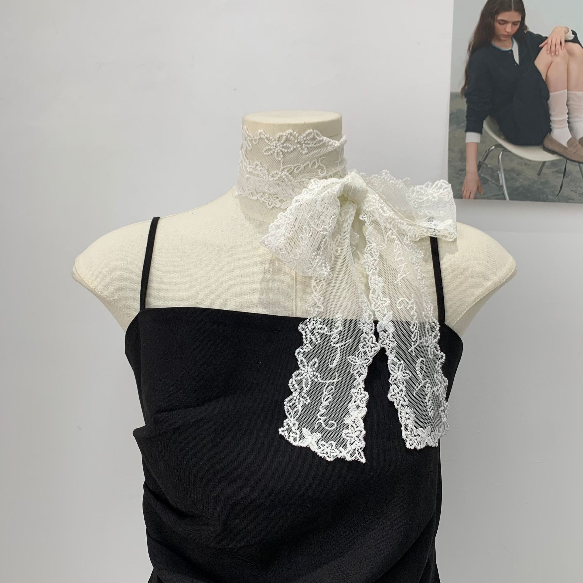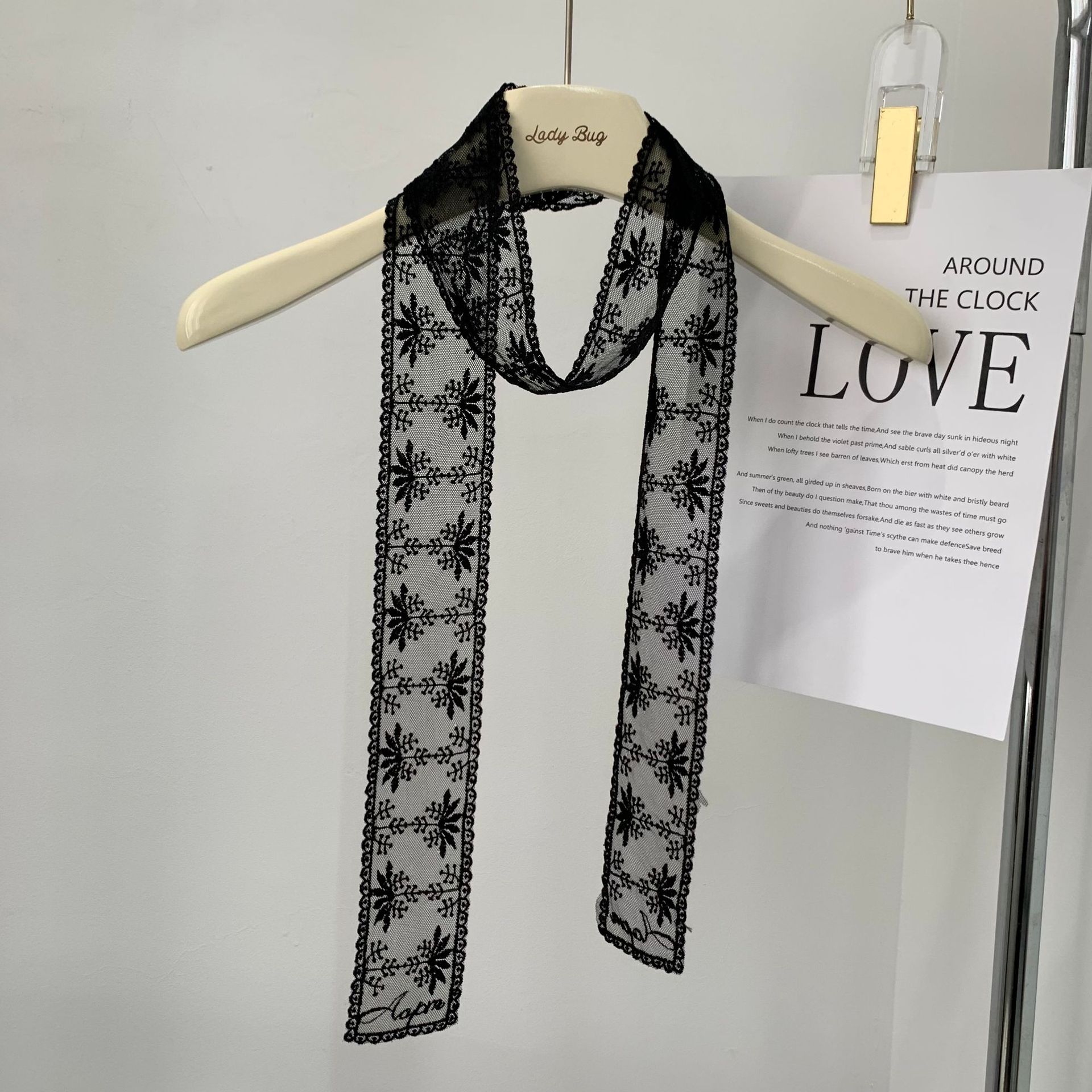 프랑스 스타일 Instagram 스타일 세련된 레이스 리본 실크 스카프 유행 올 매치 콜라본 목 스카프 틈새 여성 스카프스토어 가기
