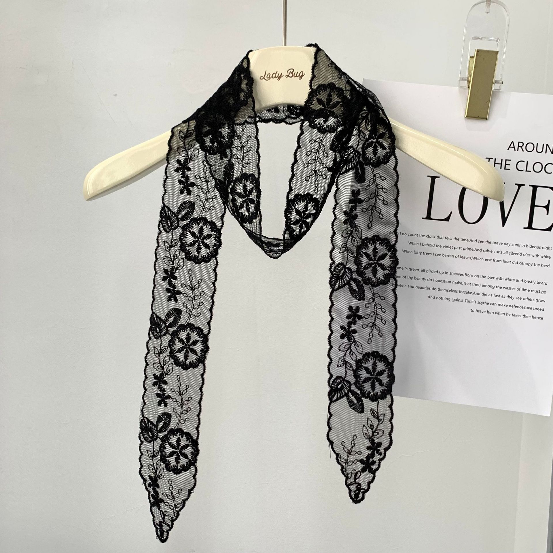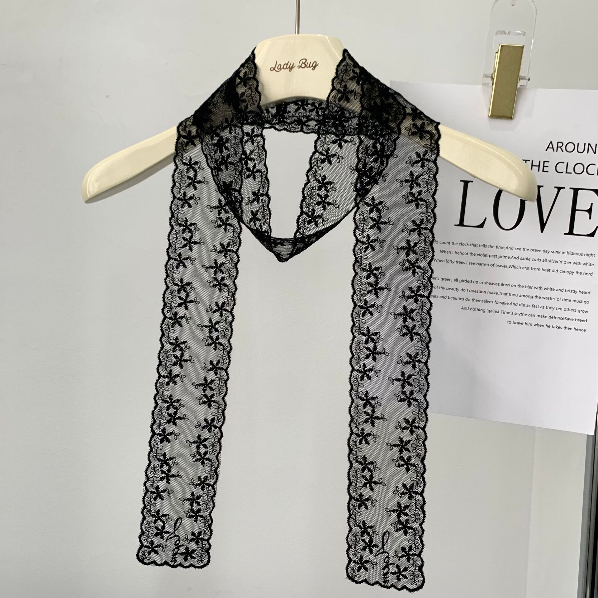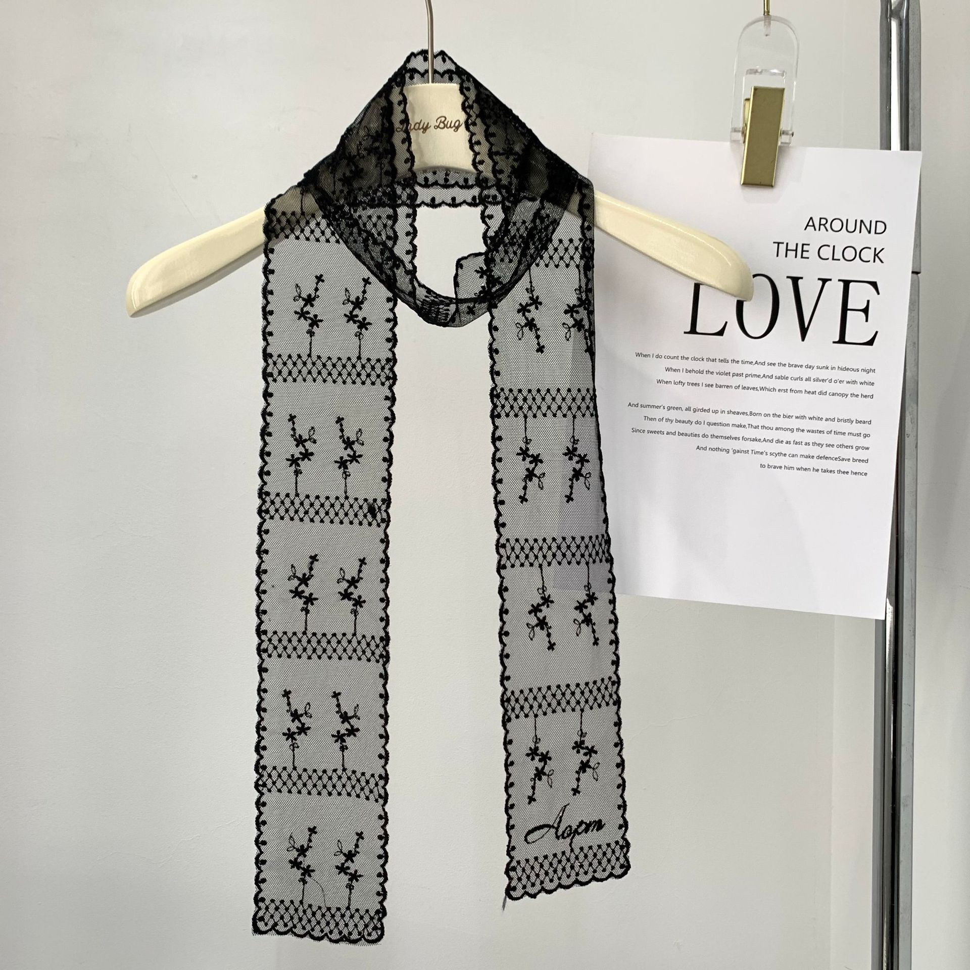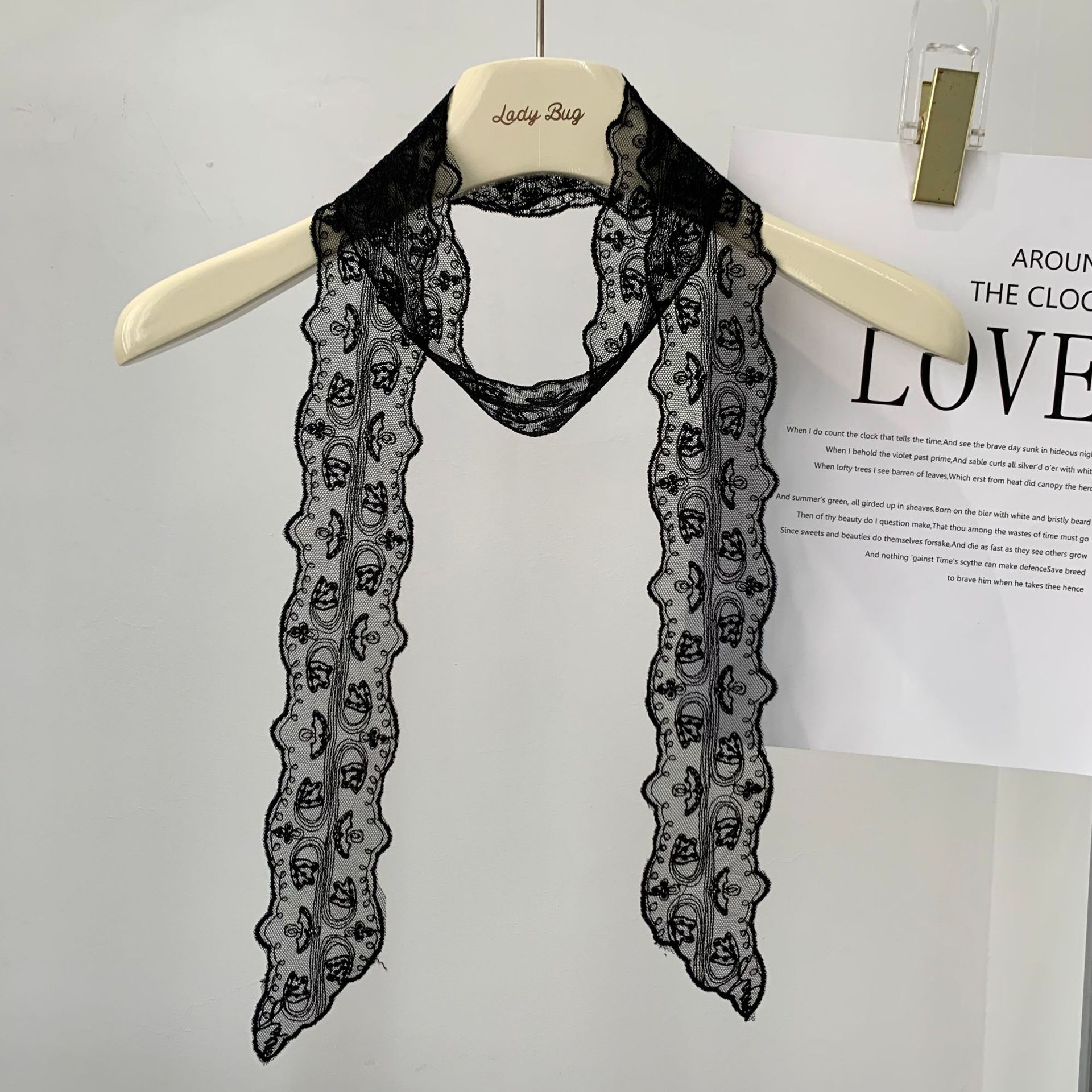 프랑스 스타일 Instagram 스타일 세련된 레이스 리본 실크 스카프 유행 올 매치 콜라본 목 스카프 틈새 여성 스카프스토어 가기