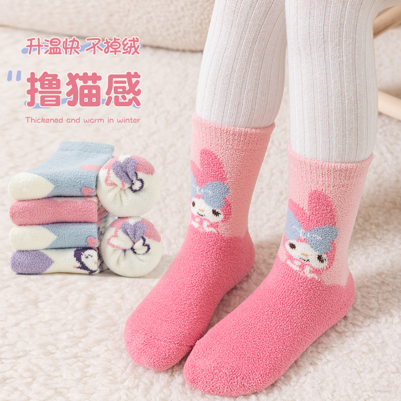어린이 양말 겨울 두꺼운 양면 벨벳 따뜻하고 만화 귀여운 학생 소년과 소녀 통기성 두꺼운 아기 양말
