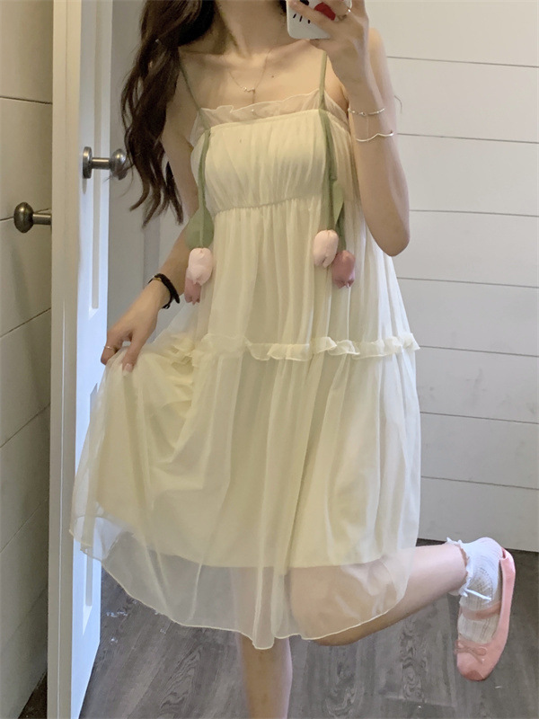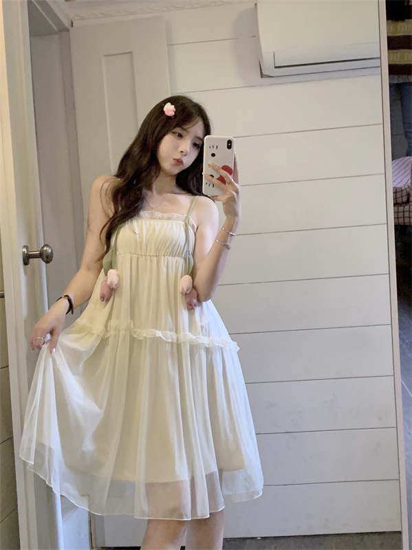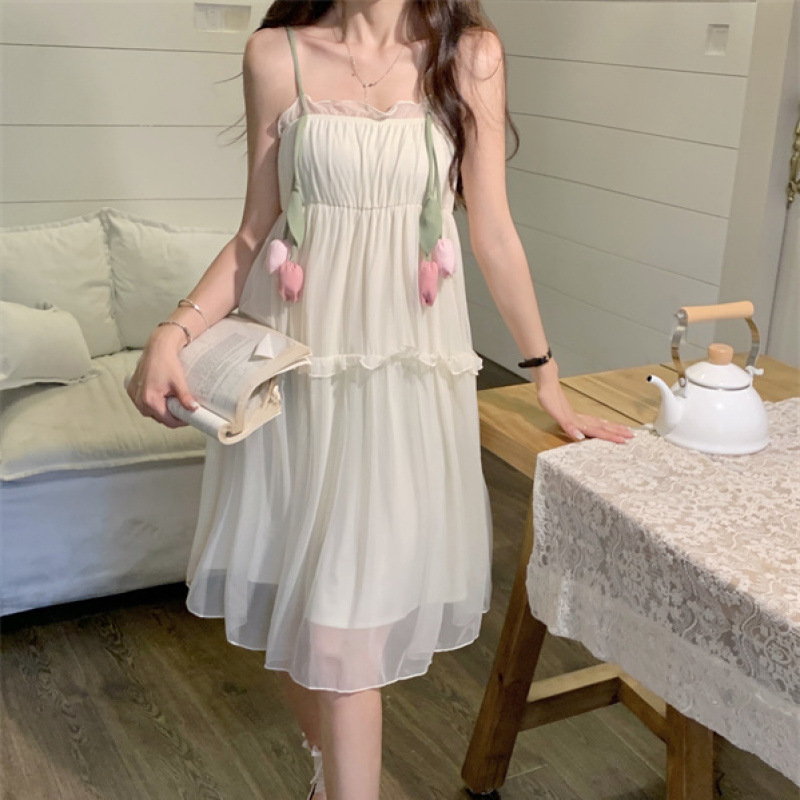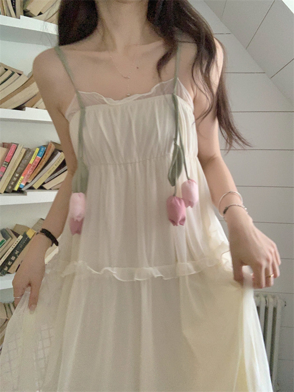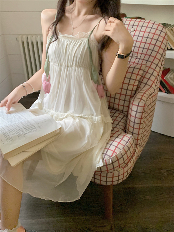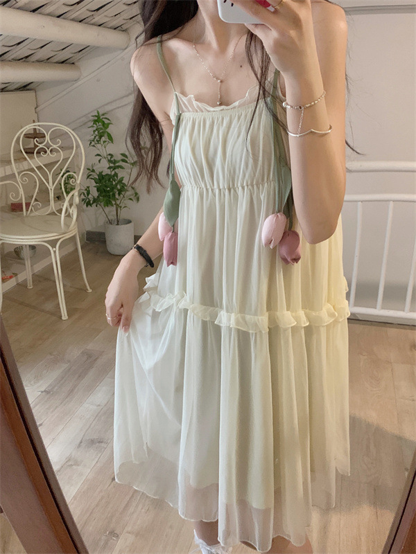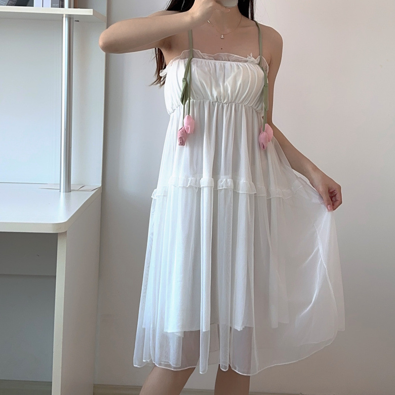 순수한 욕망 메시 꽃 가슴 패드 슬링 나이트 가운 여성의 여름 얇은 달콤한 귀여운 코트 스타일 파자마 홈 옷스토어 가기