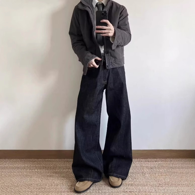 미국식 세탁 오리지널 카우 루즈 스트레이트 A-워드 레트로 청바지 남성과 여성의 트렌디 브랜드 미친 배달 바지 캐주얼 바지
