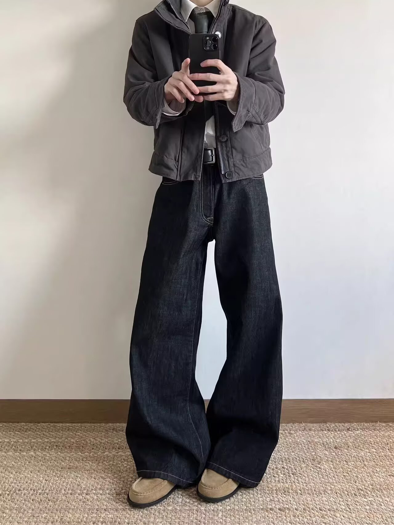 미국식 세탁 오리지널 카우 루즈 스트레이트 A-워드 레트로 청바지 남성과 여성의 트렌디 브랜드 미친 배달 바지 캐주얼 바지스토어 가기