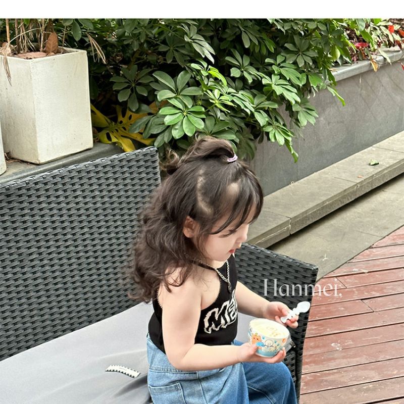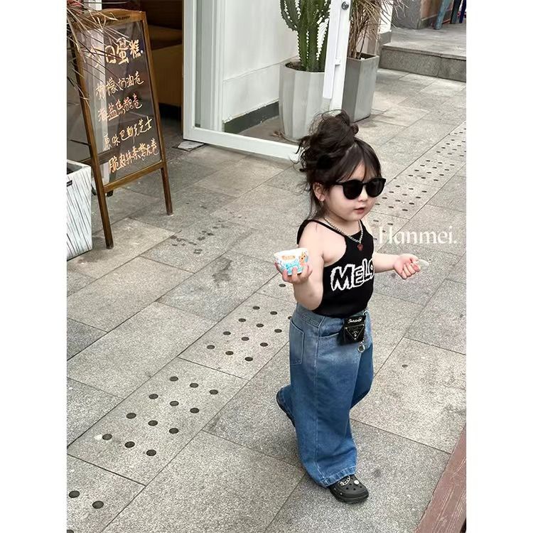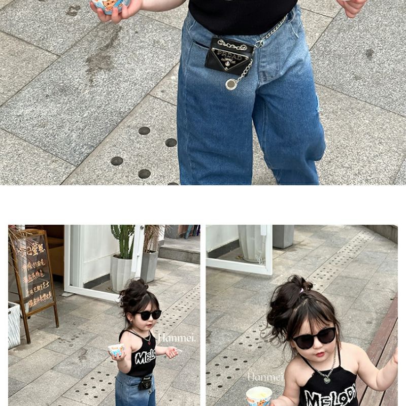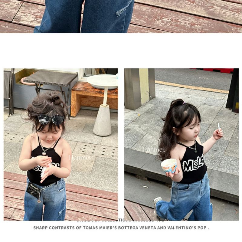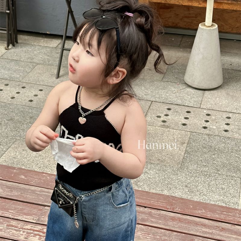 여자 여름 조끼 슬링 아기 세련 된 어린이 성격 유행 브랜드 한국 편지 목 매달린 유행 벨리밴드 아우터 착용스토어 가기