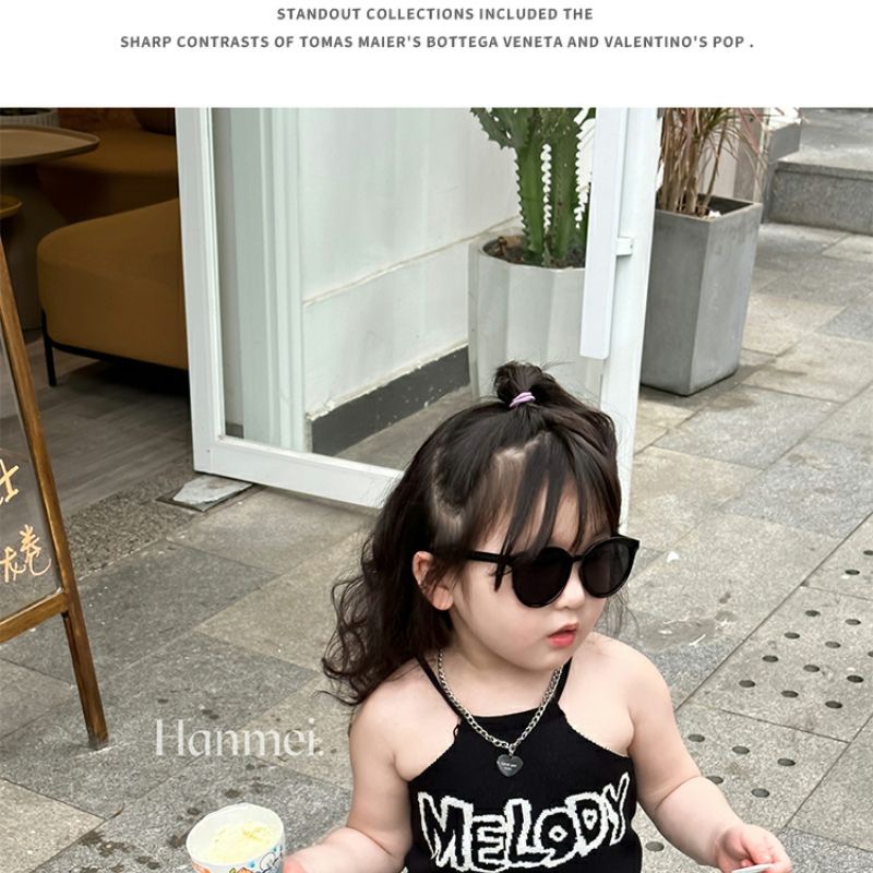 여자 여름 조끼 슬링 아기 세련 된 어린이 성격 유행 브랜드 한국 편지 목 매달린 유행 벨리밴드 아우터 착용