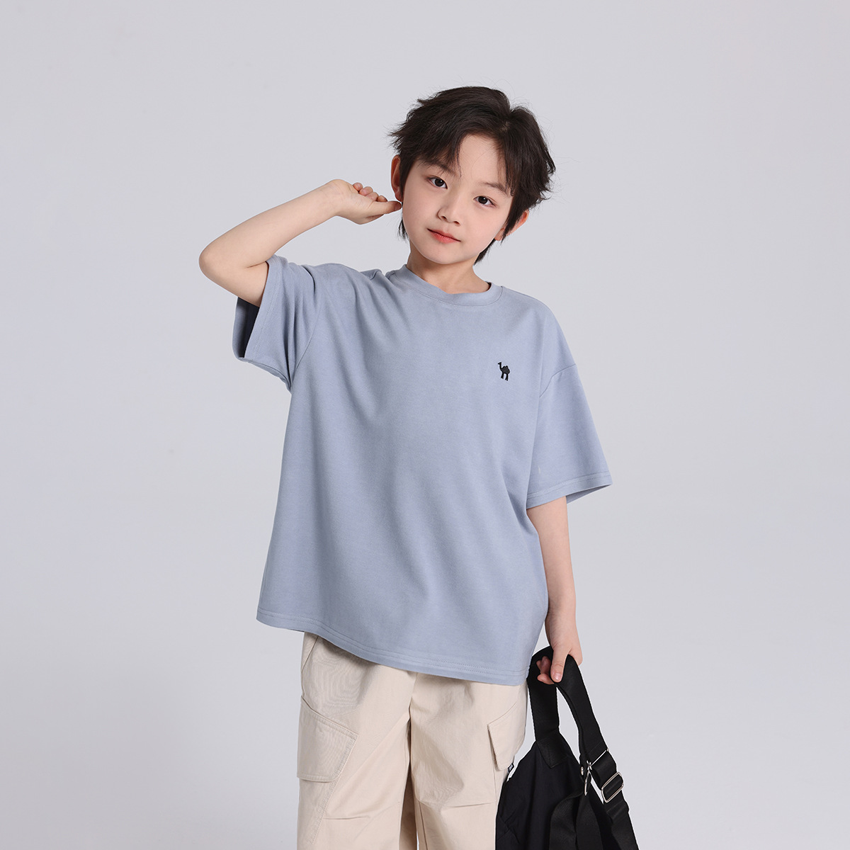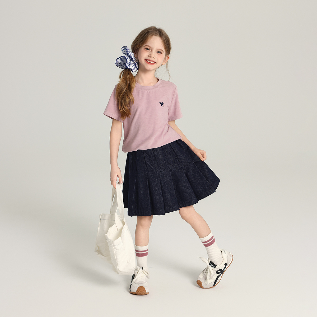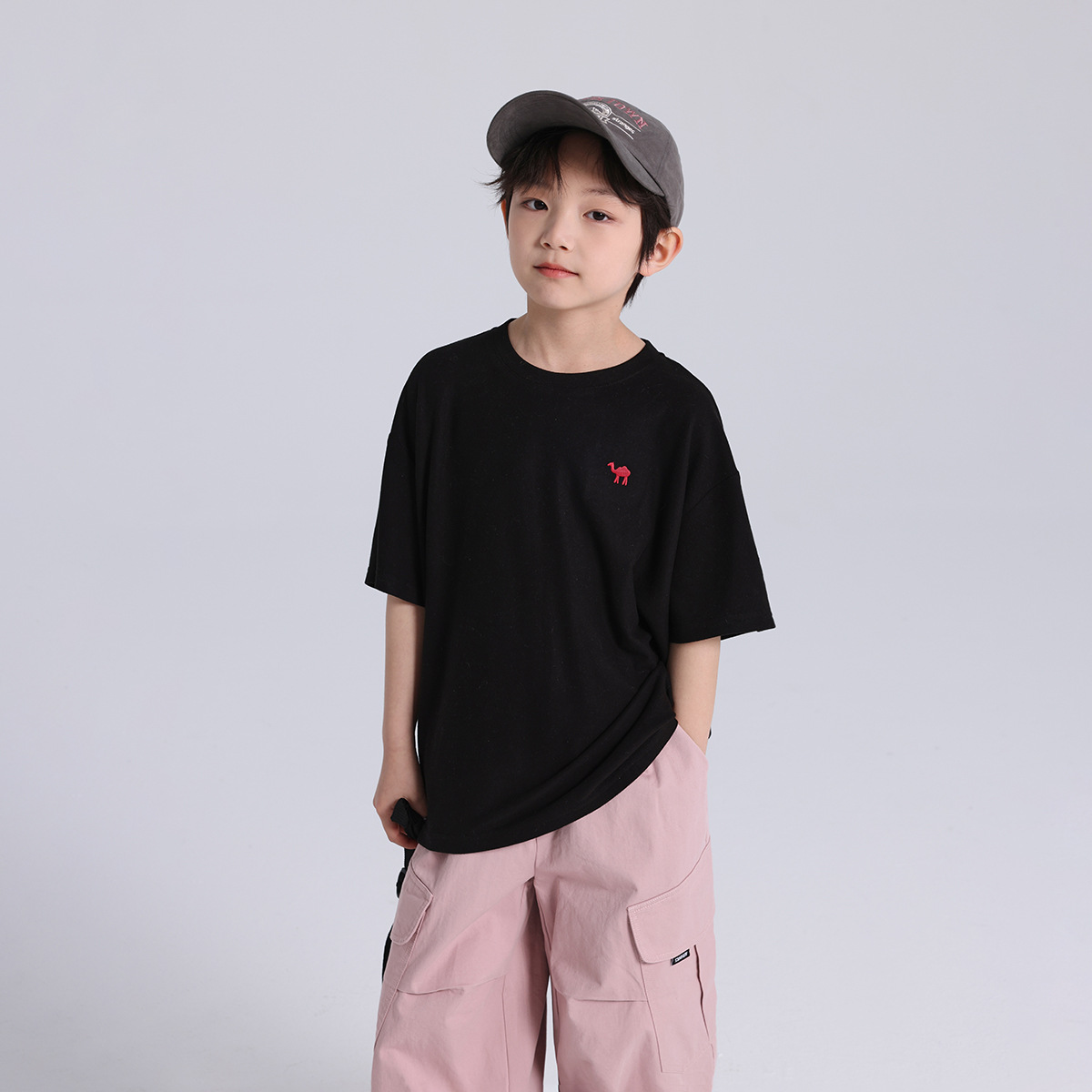 푸딩 할루 소녀 반팔 바닥 셔츠 2025 봄 신작 어린이 다목적 솔리드 컬러 자수 티셔츠스토어 가기
