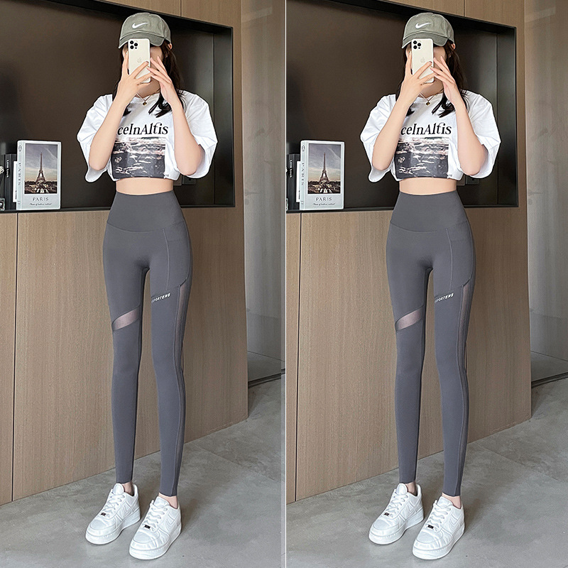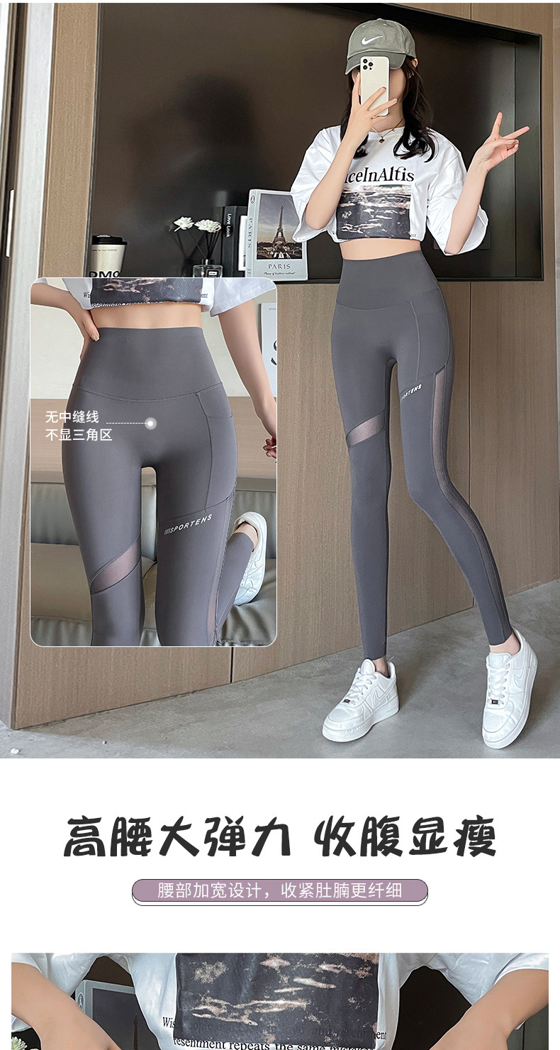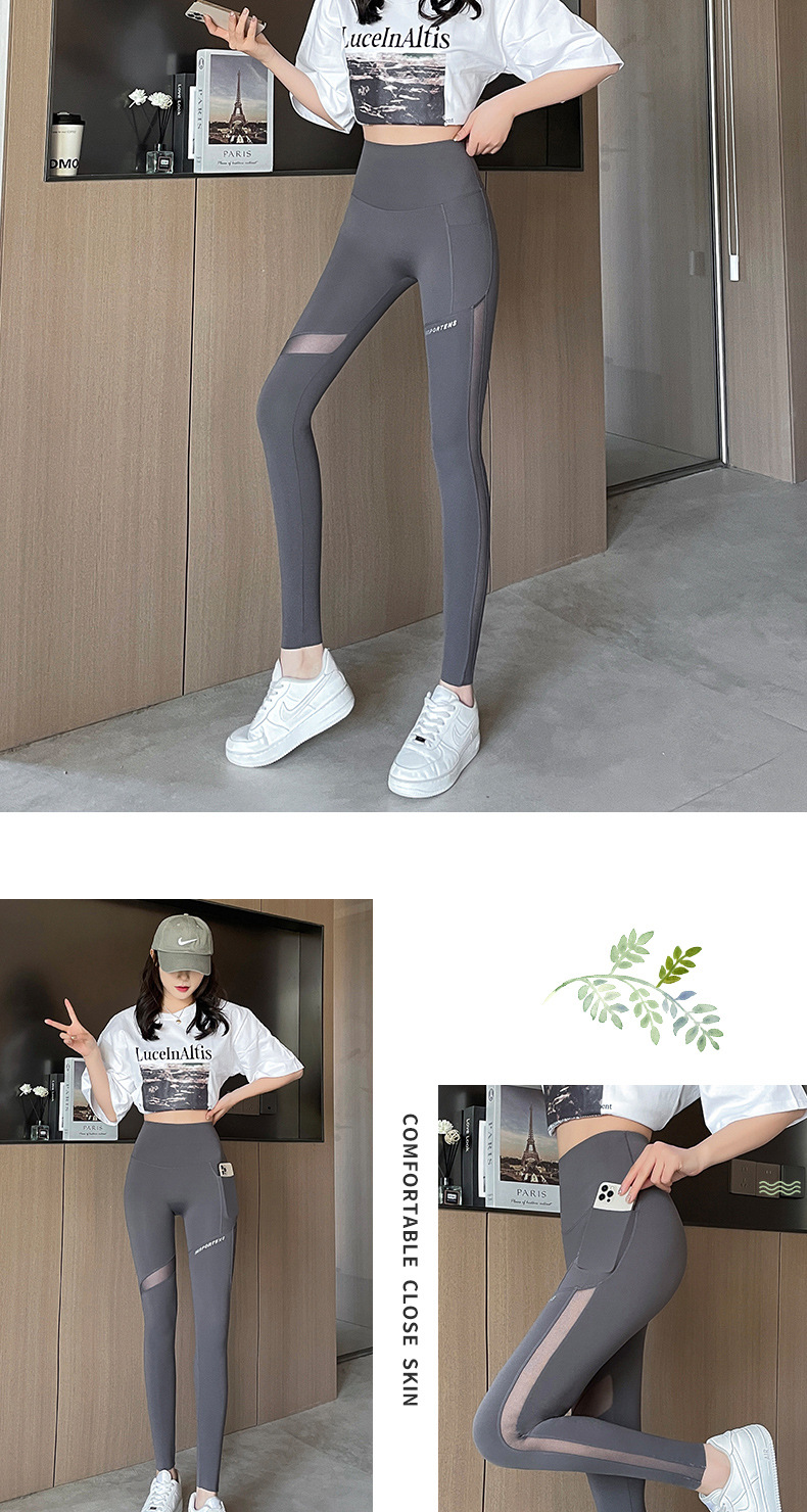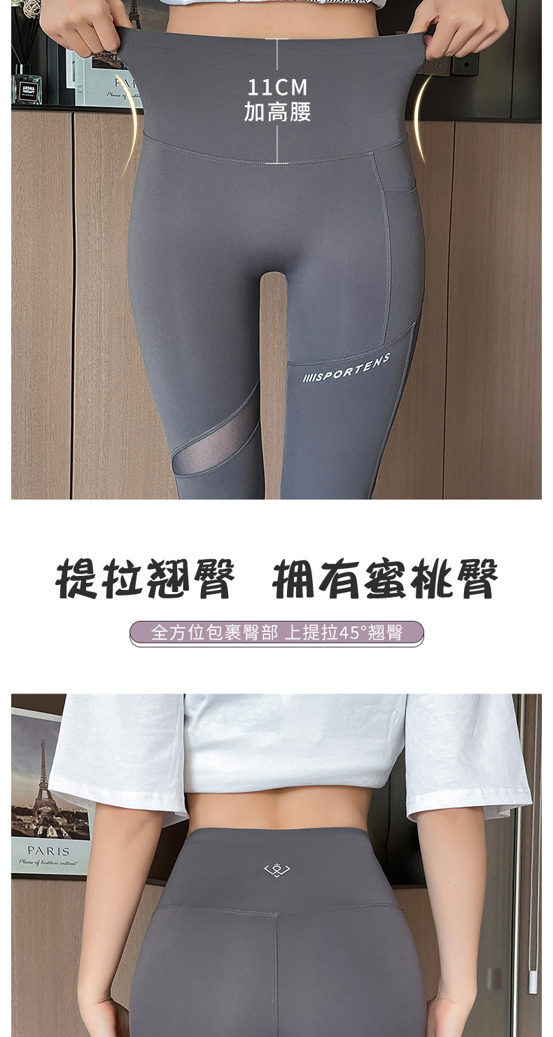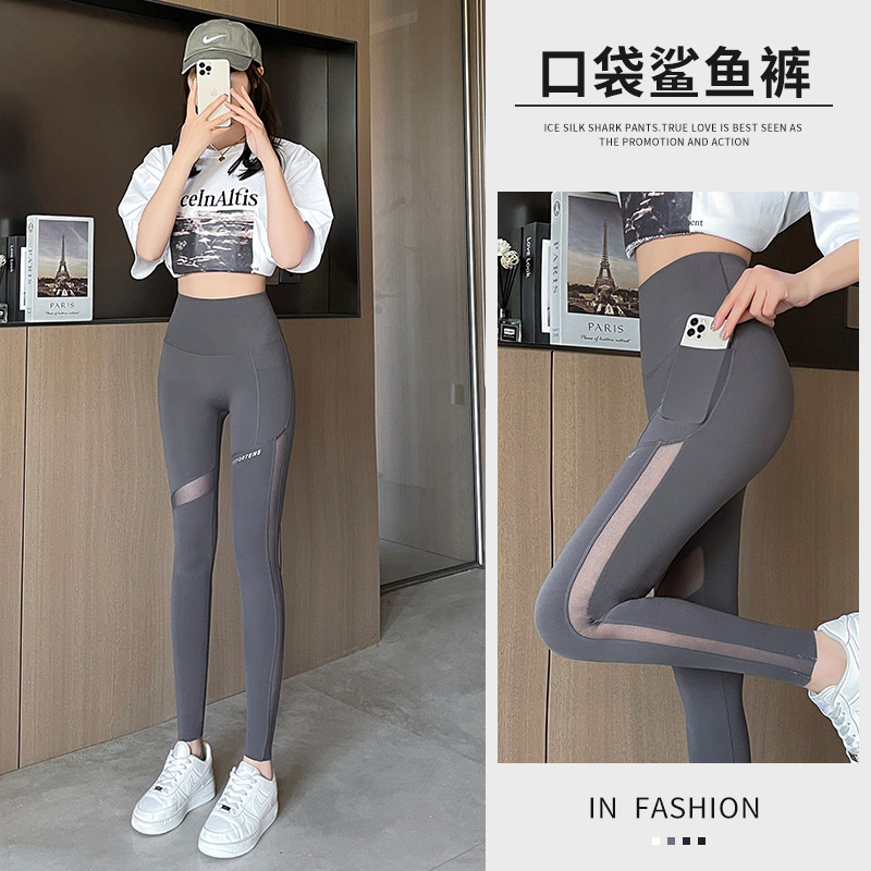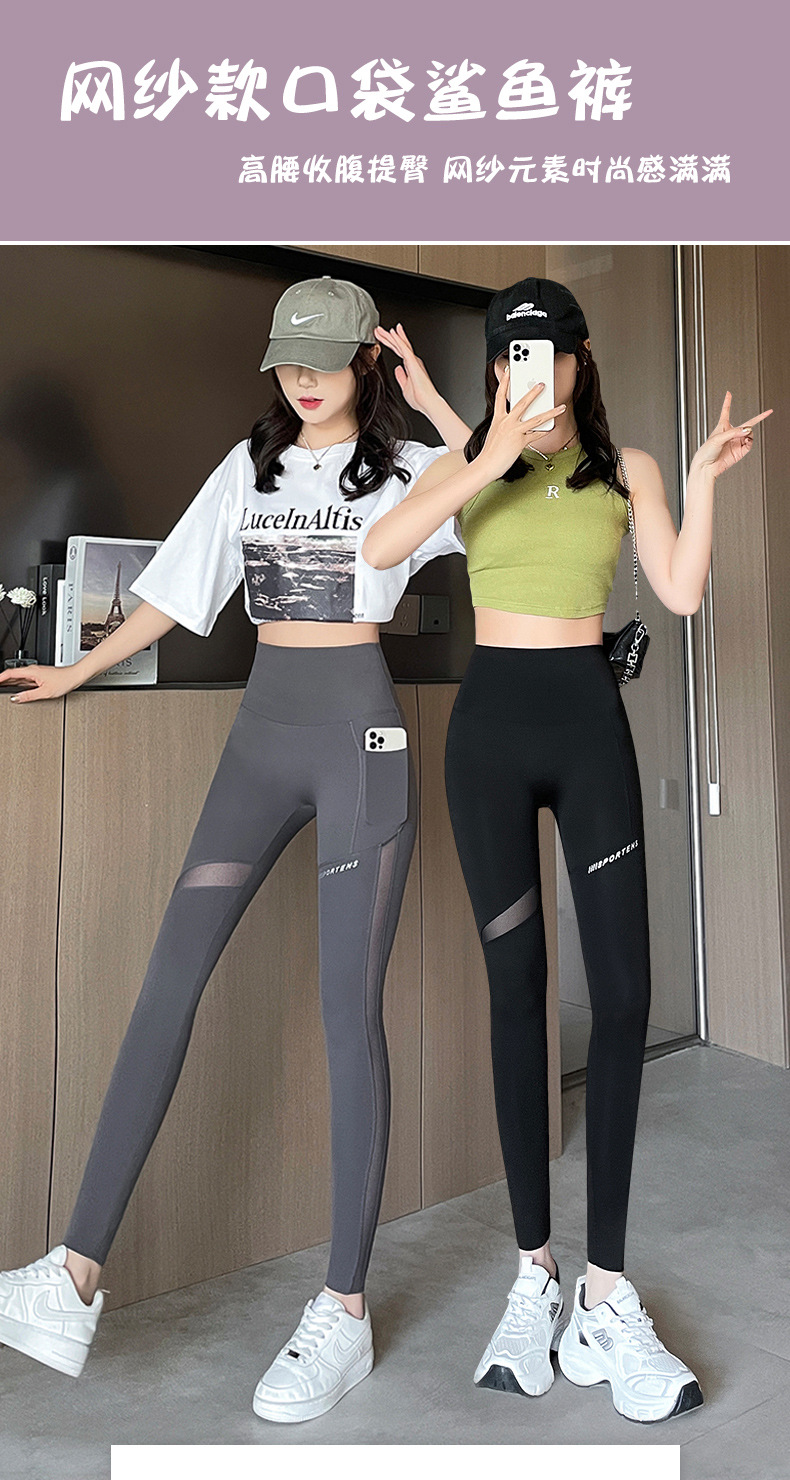 상어 바지 메쉬 포켓 자른 다리 여성 봄과 가을 얇은 높은 허리 엉덩이 요가 바비 피트니스 사이클링 바지
