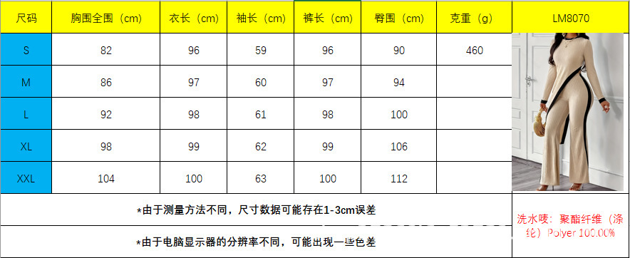 유럽 및 미국 해외직구 2025 봄/여름 신상 여성 패션 배색 긴팔 사이드 슬릿 티셔츠+스플라이싱 팬츠 세트스토어 가기