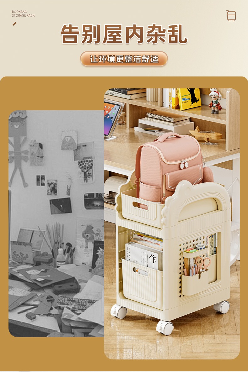 스쿨백 스토리지 랙 바닥 서 다층 이동식 카트 스토리지 랙 테이블 아래 책 보관 아티팩트 홈 책장