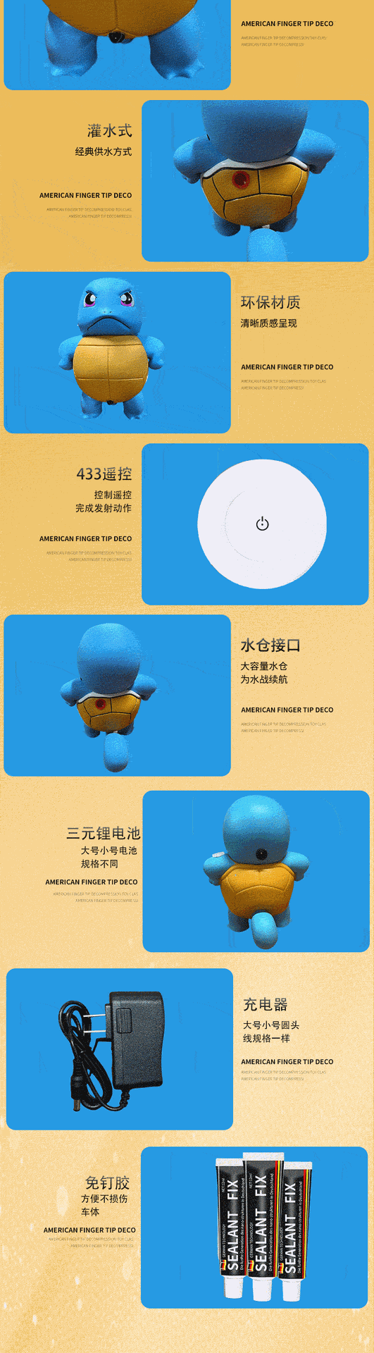 • 담배 라이터로 구동되는 소형 물분무 꼬부기(16cm)