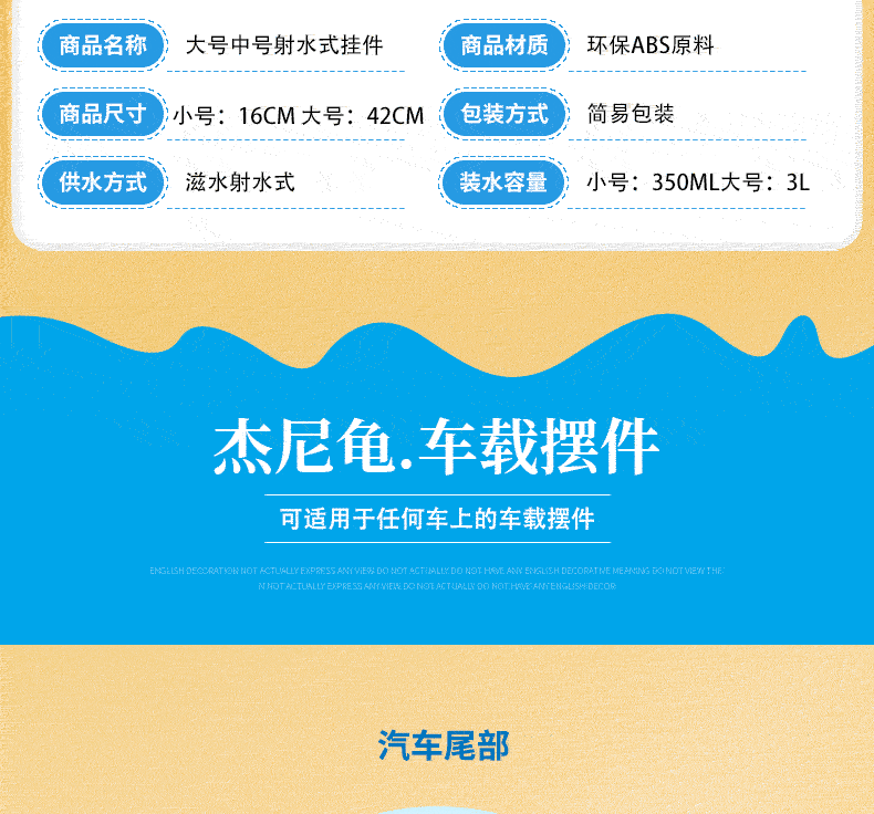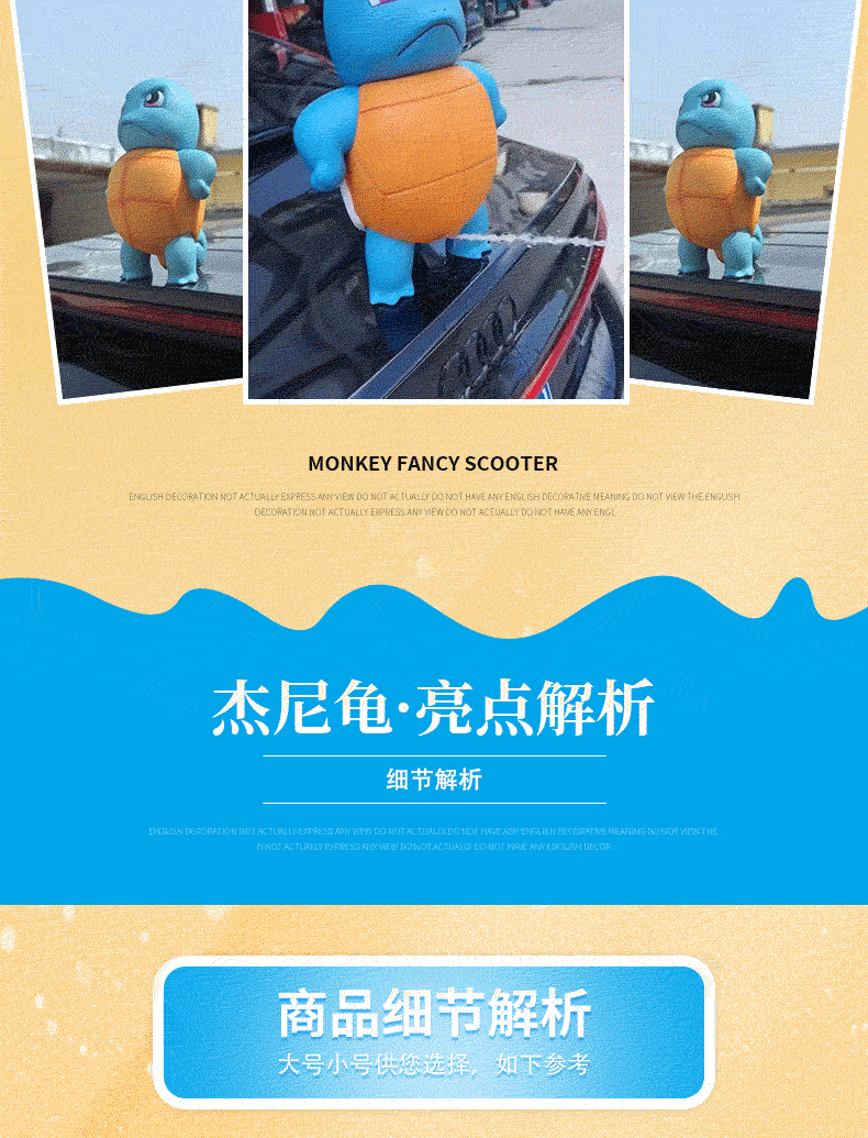 제니 터틀 자동차 부품 스프레이 워터 포켓몬 대형 자랑스러운 제니 터틀 엘프