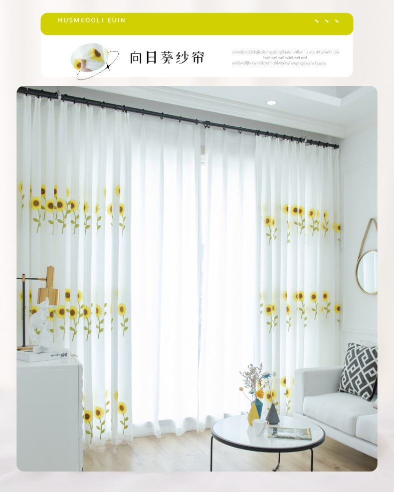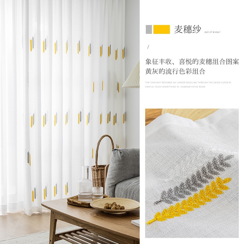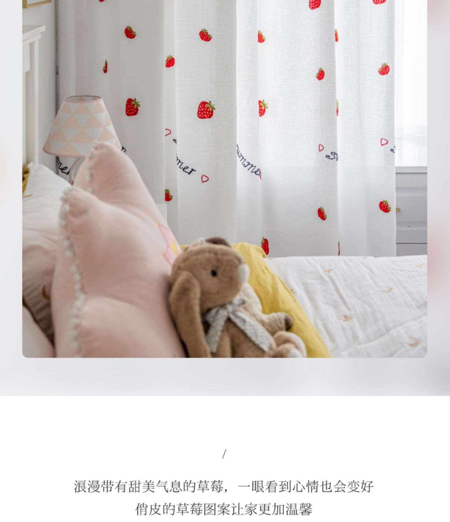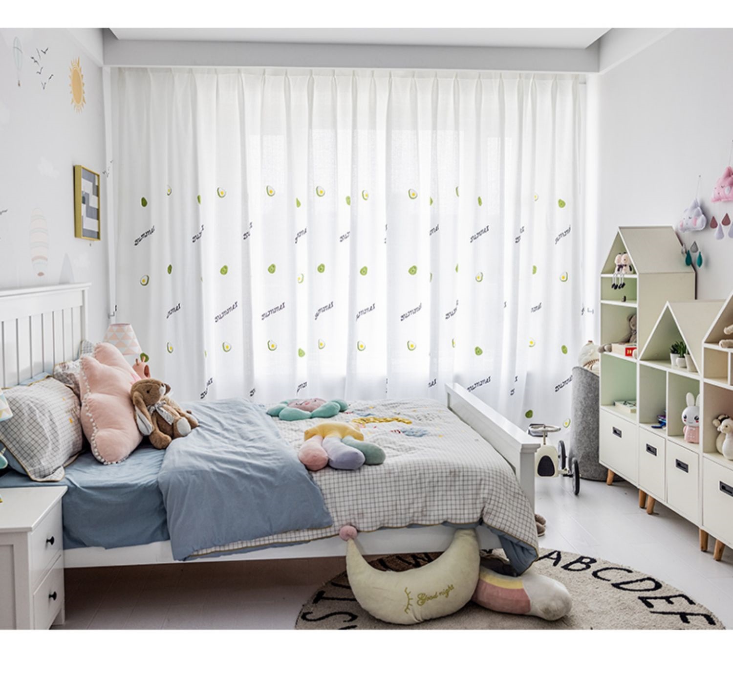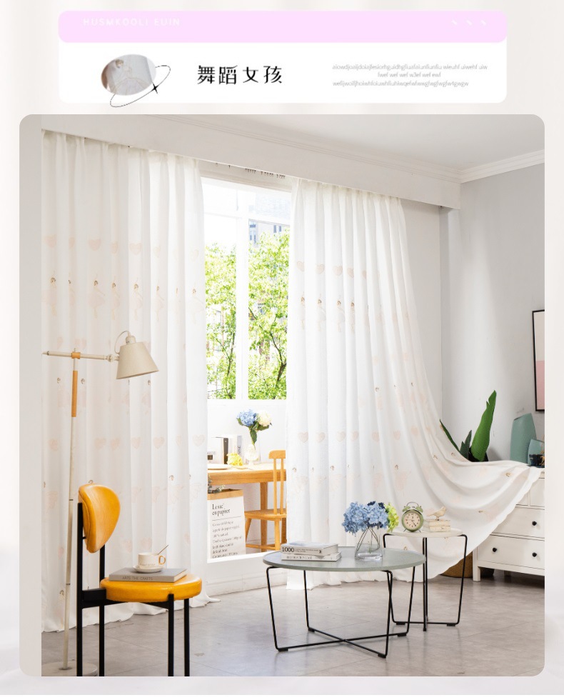 침실 커튼 투명한 구불 구불 한 거즈 커튼 짧은 베이 창 어린이 방 벨크로 창 화면 발코니 구멍 무료 설치스토어 가기