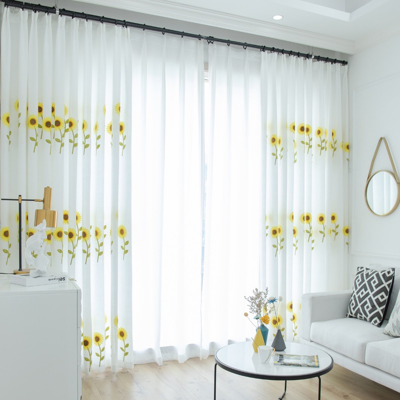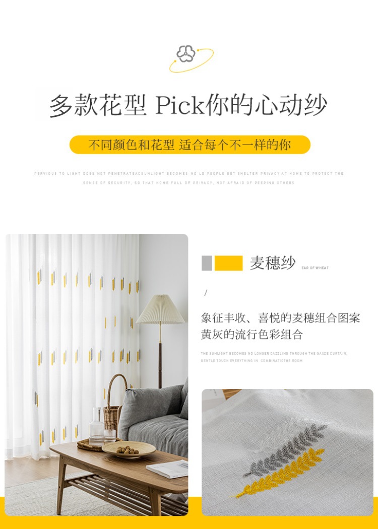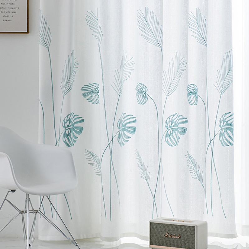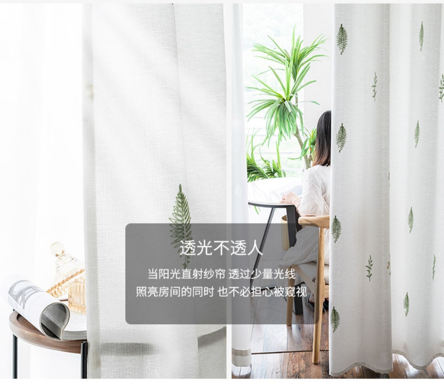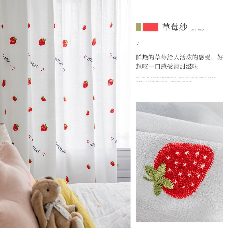 침실 커튼 투명한 구불 구불 한 거즈 커튼 짧은 베이 창 어린이 방 벨크로 창 화면 발코니 구멍 무료 설치스토어 가기