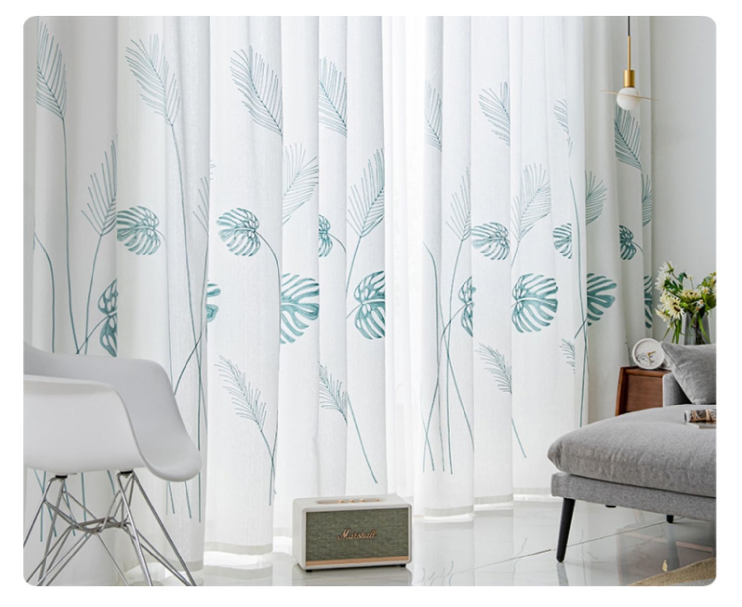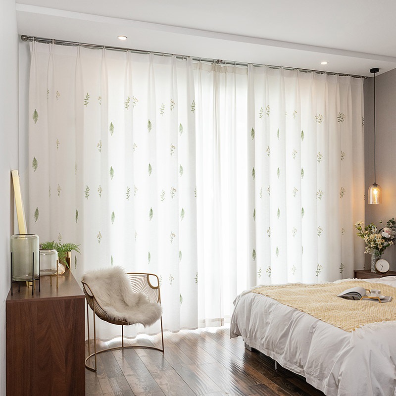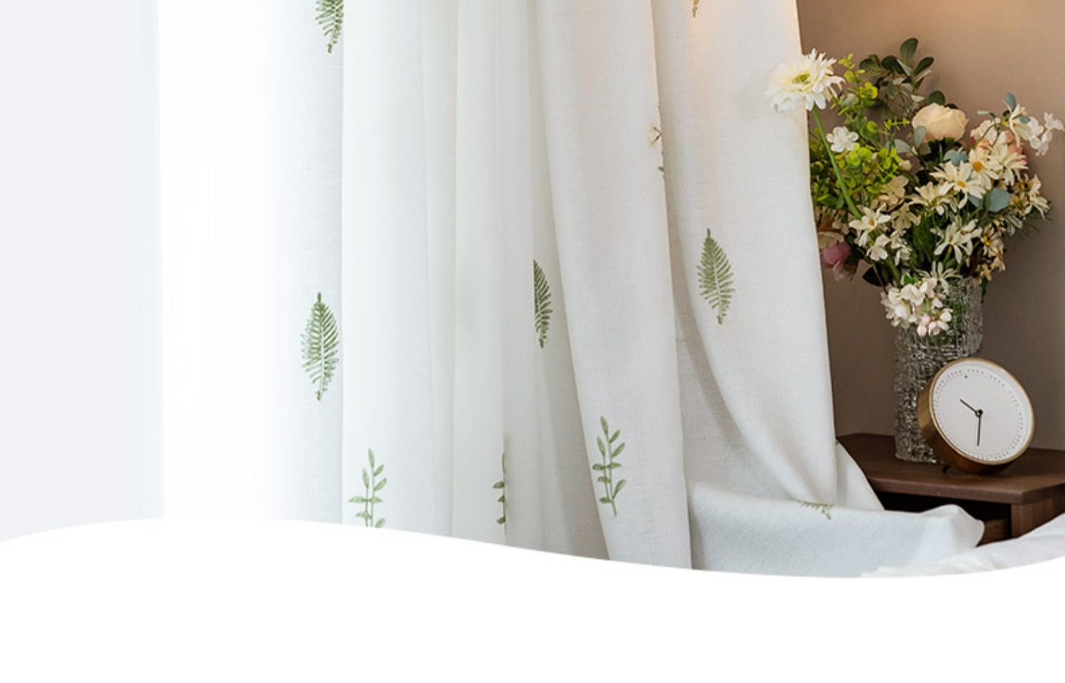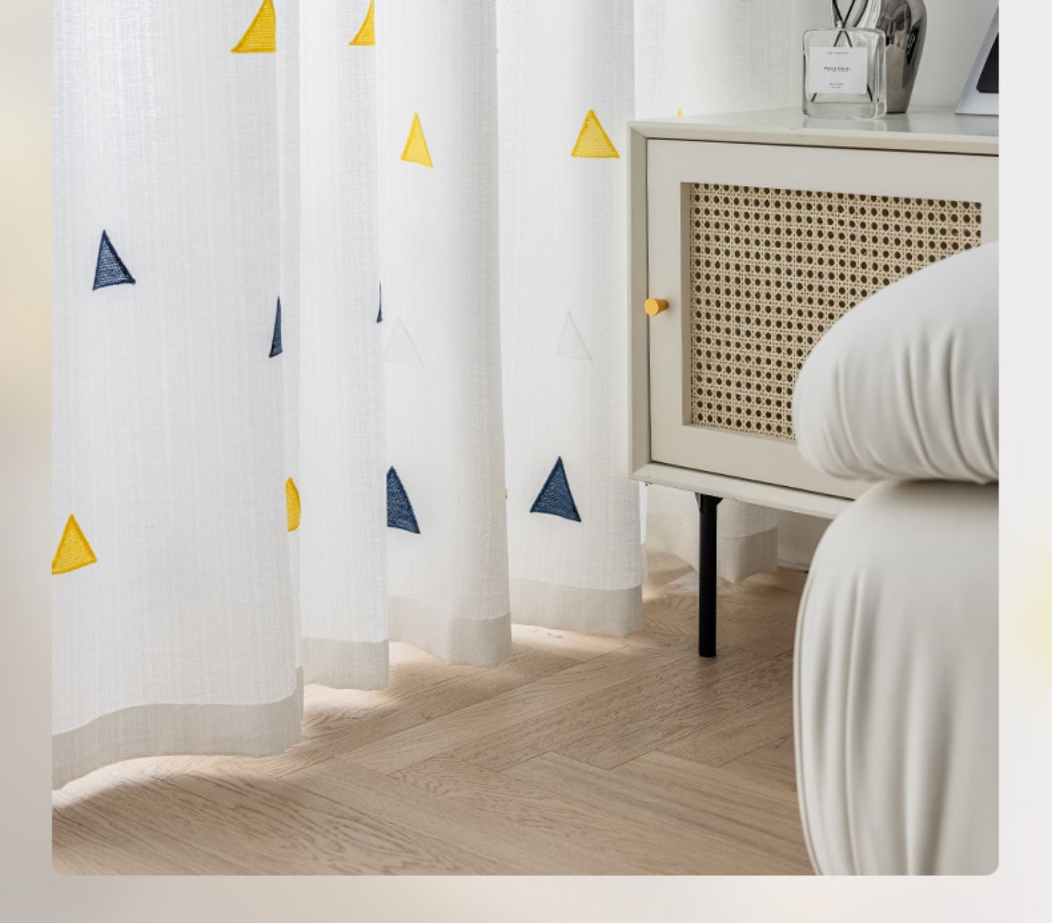 침실 커튼 투명한 구불 구불 한 거즈 커튼 짧은 베이 창 어린이 방 벨크로 창 화면 발코니 구멍 무료 설치스토어 가기