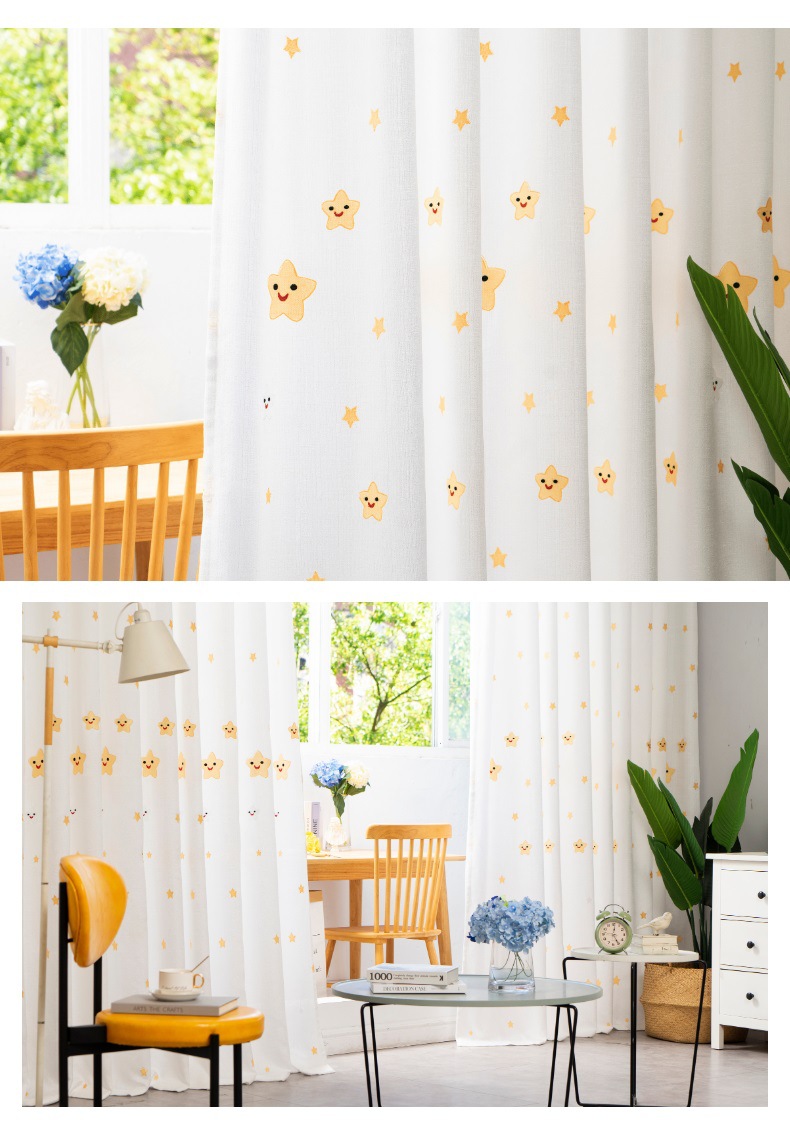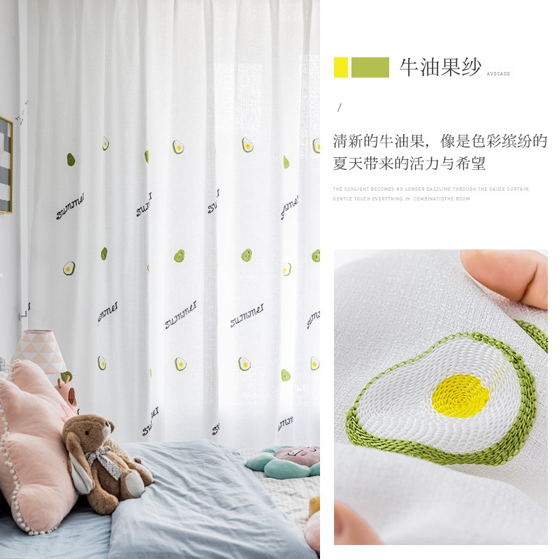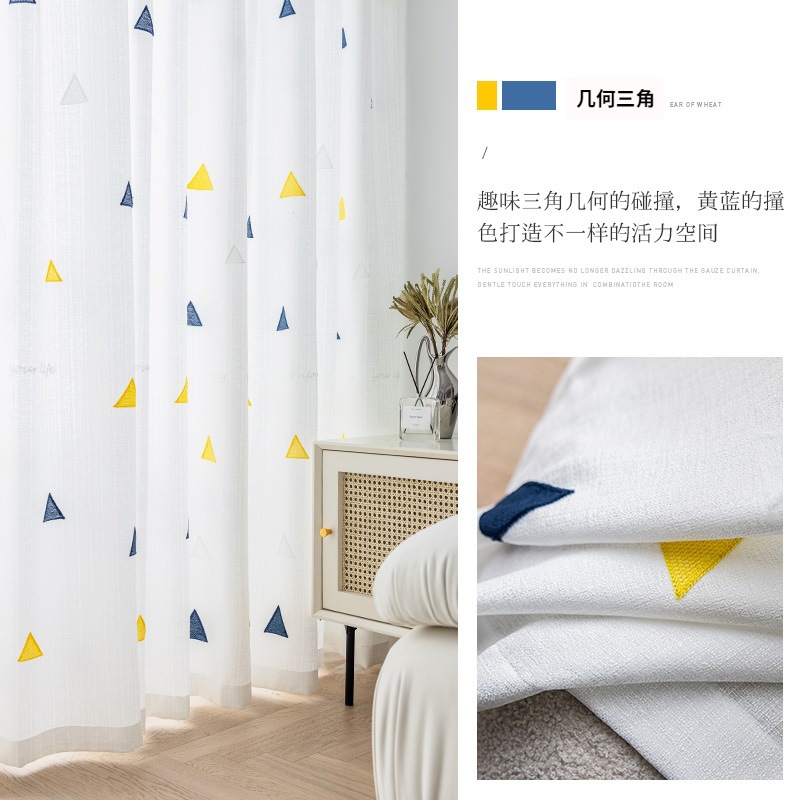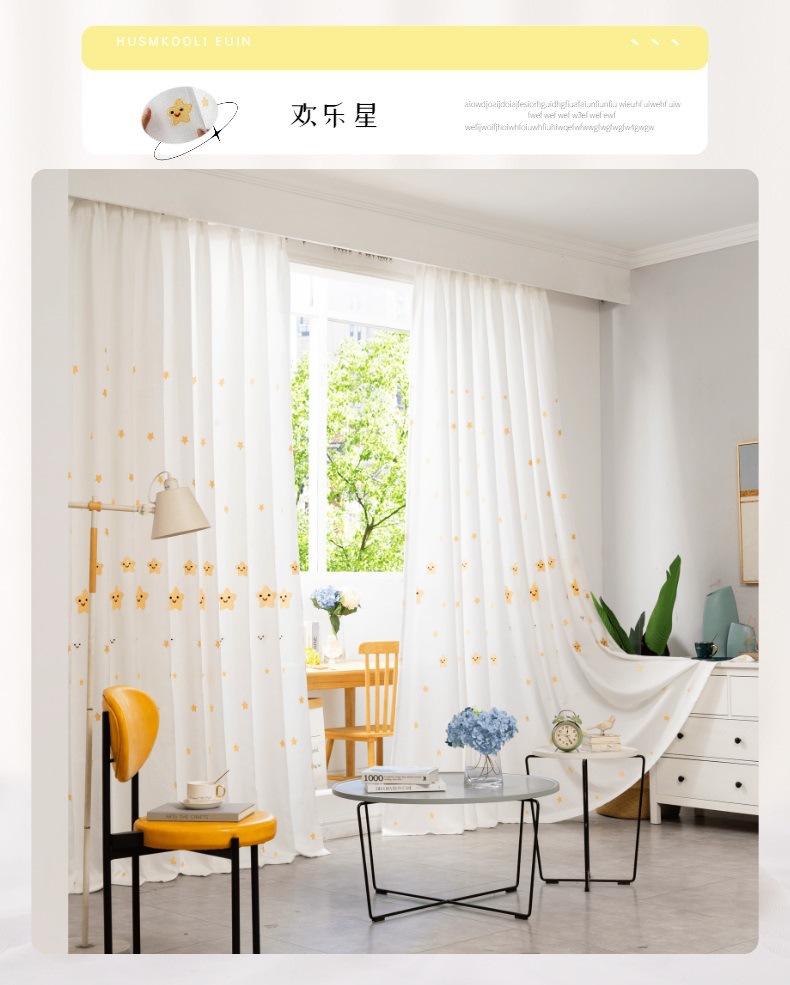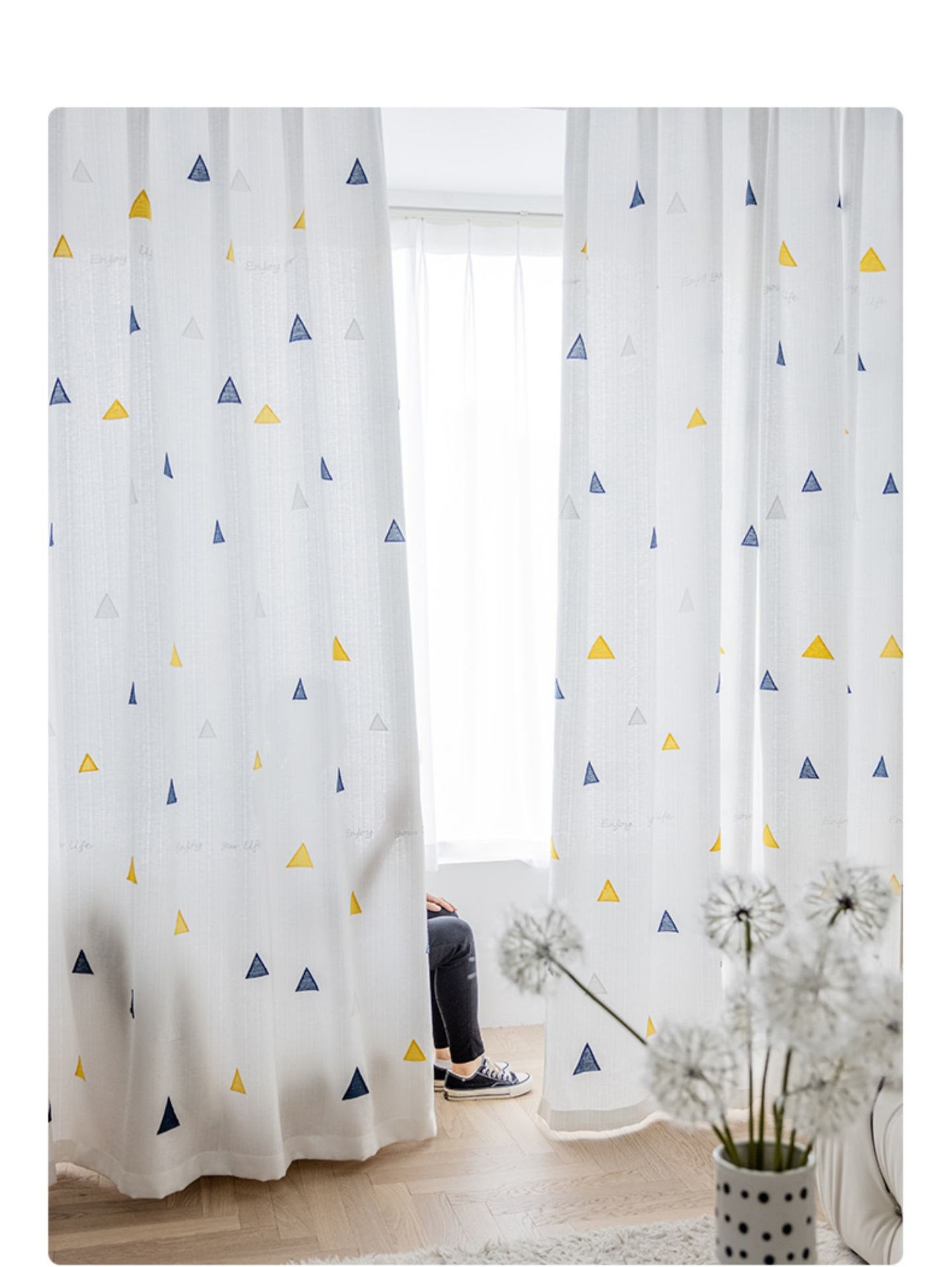 침실 커튼 투명한 구불 구불 한 거즈 커튼 짧은 베이 창 어린이 방 벨크로 창 화면 발코니 구멍 무료 설치