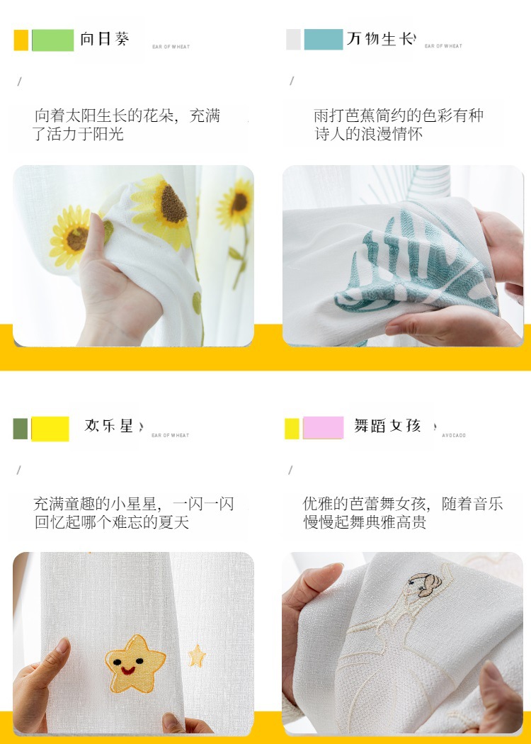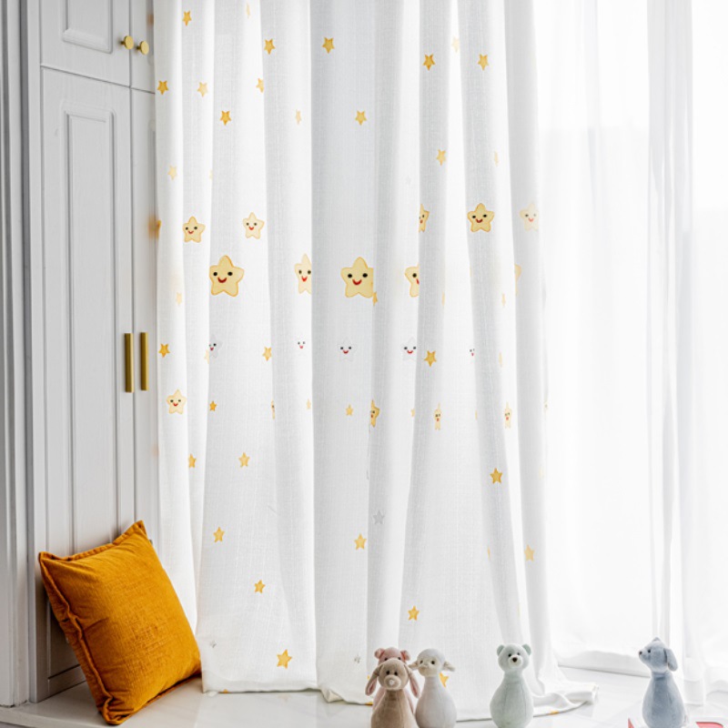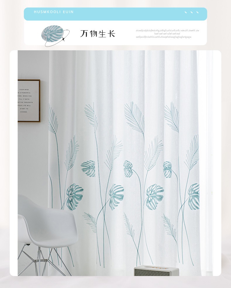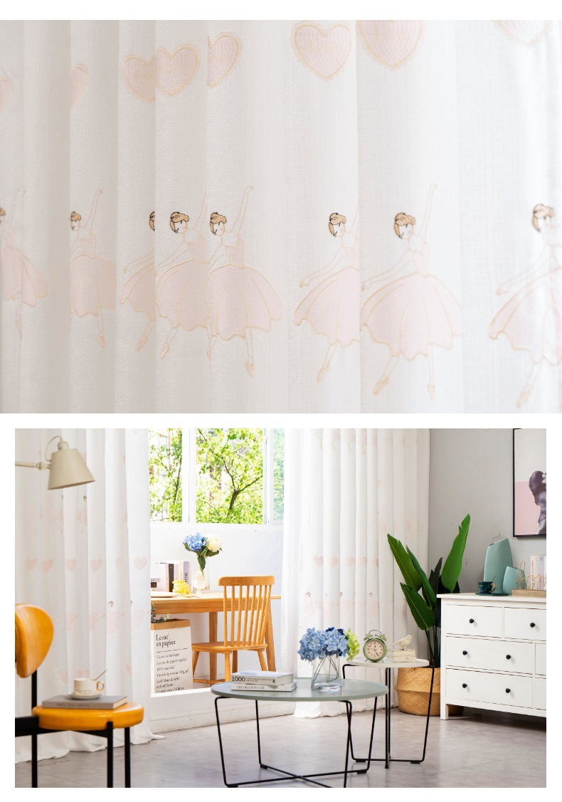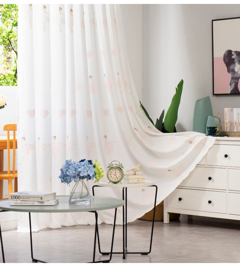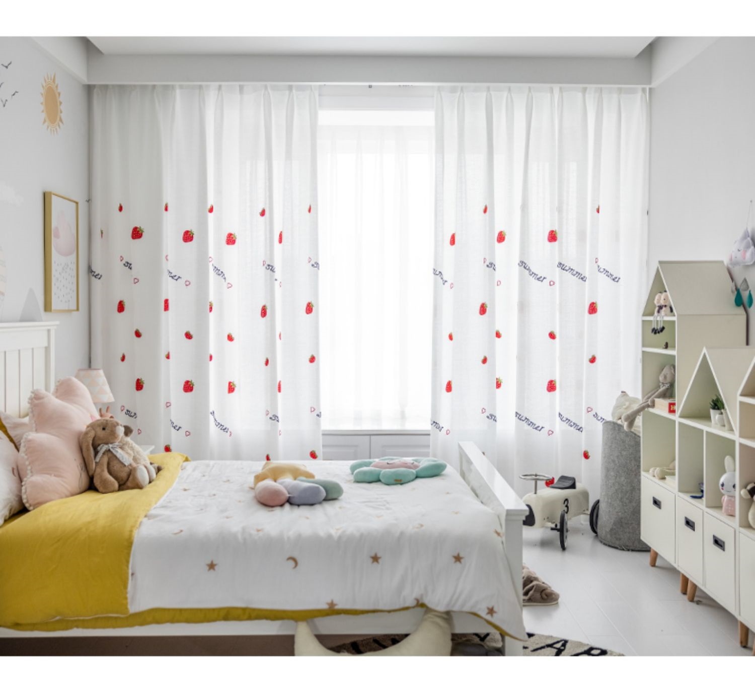 침실 커튼 투명한 구불 구불 한 거즈 커튼 짧은 베이 창 어린이 방 벨크로 창 화면 발코니 구멍 무료 설치