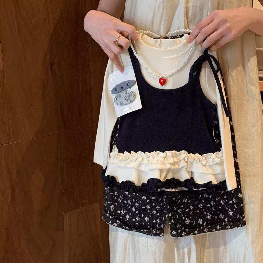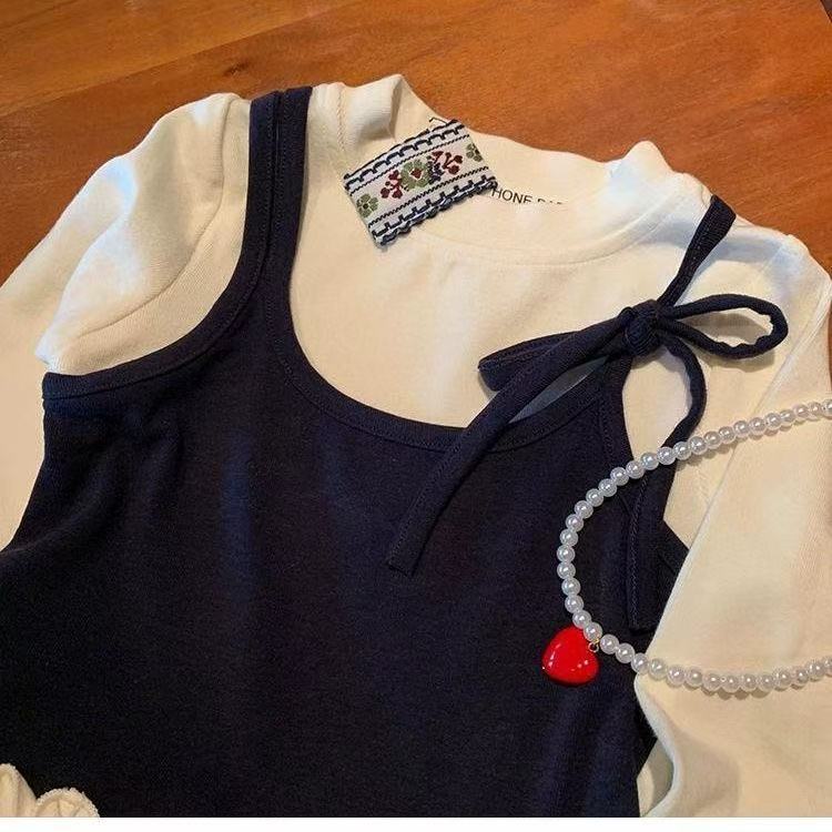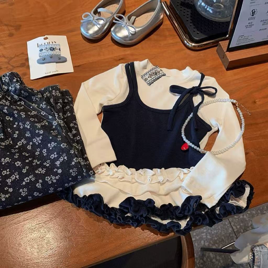 여자 봄 원피스 세트 2025 한국 스타일 새로운 여성 바오 외국 스타일 가짜 투피스 탑 어린이 바지 캐주얼 투피스 세트