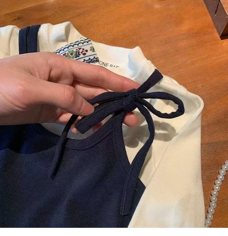여자 봄 원피스 세트 2025 한국 스타일 새로운 여성 바오 외국 스타일 가짜 투피스 탑 어린이 바지 캐주얼 투피스 세트스토어 가기
