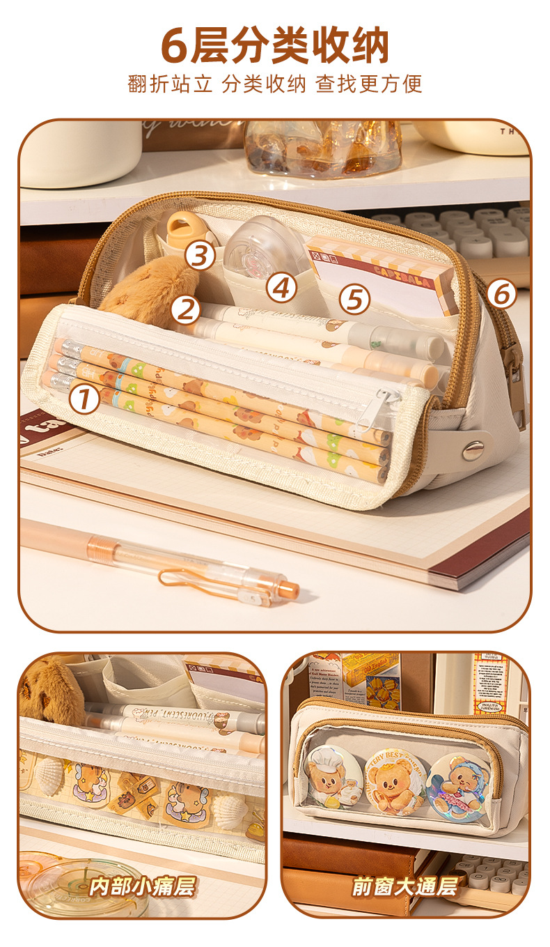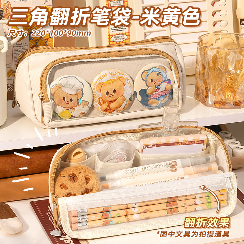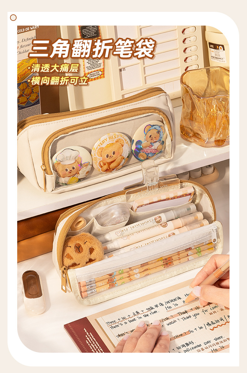 삼각형 연필 가방 통증 가방 문구 가방 대용량 다기능 문구 상자 높은 색상 값 멀티 레이어 분류 투명 저장 가방