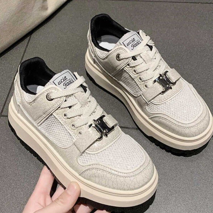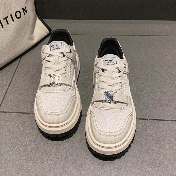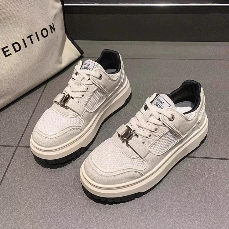 흰색 신발 여성의 2025 봄과 가을 새로운 메쉬 통기성 한국 캐주얼 운동화 대외 무역 두꺼운 밑창 경량 보드 신발스토어 가기