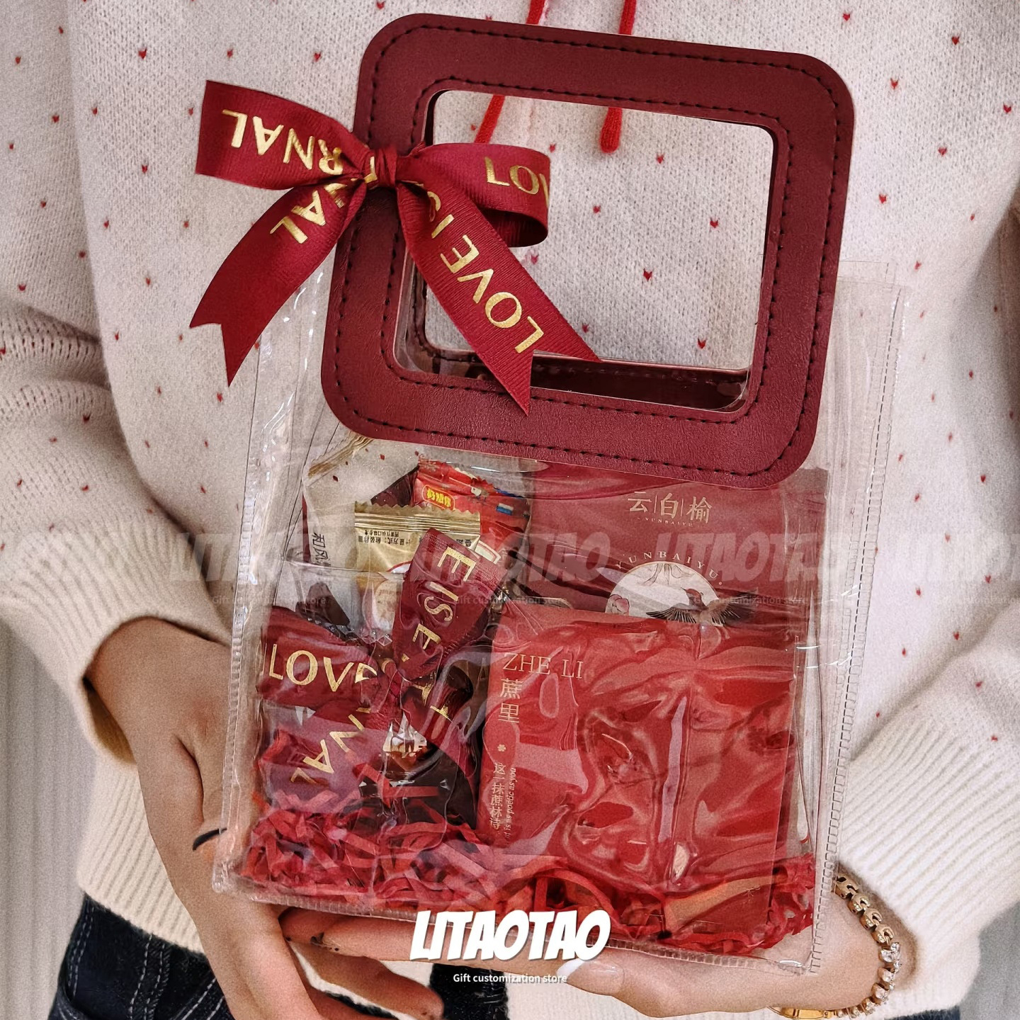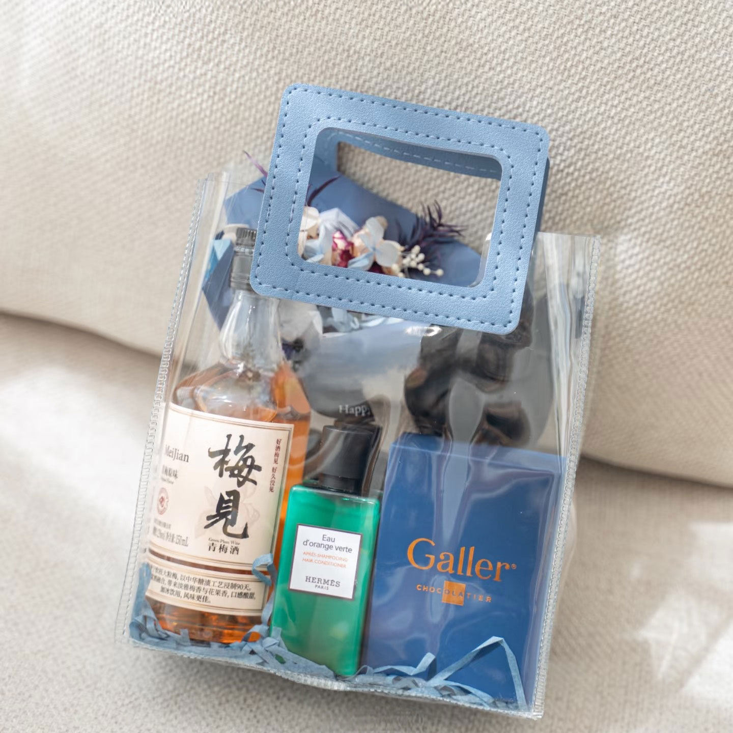 재고 pvc 플라스틱 토트 백 투명 손 선물 가방 맞춤형 포장 가방 여성의 날 선물 가방 맞춤형 도매