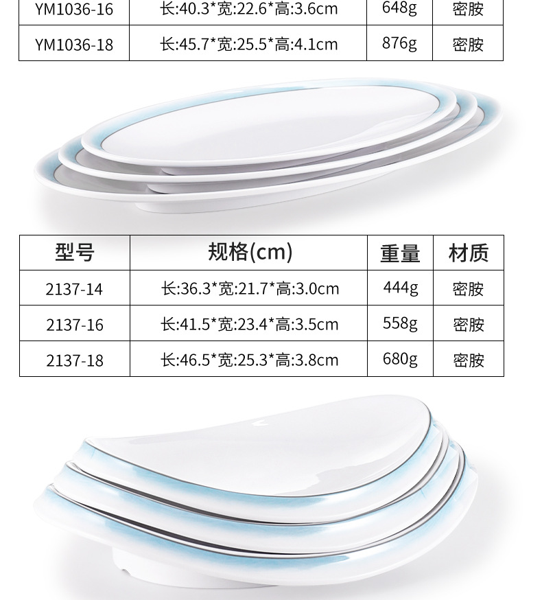 멜라민 플레이트 상업용 식기 세트 호텔 호텔 특수 타원형 생선 플레이트 대형 접시 플레이트 오픈 디스플레이 플레이트스토어 가기