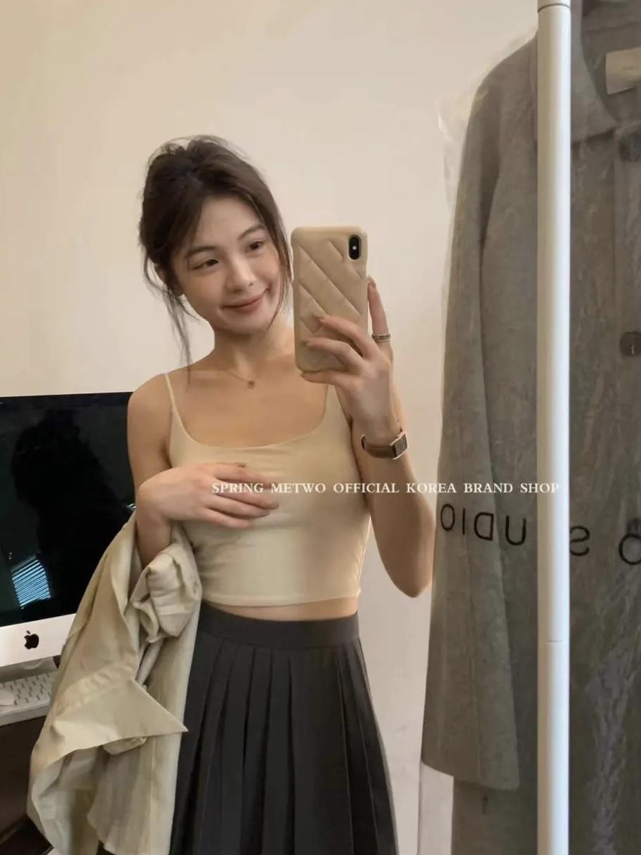 여성용 화이트 민소매 탑, 가슴 패드 내장, 슬림핏, 여름용, 데일리룩, 레이어드룩, 데님 팬츠와 함께 착용 가능스토어 가기