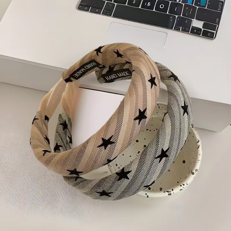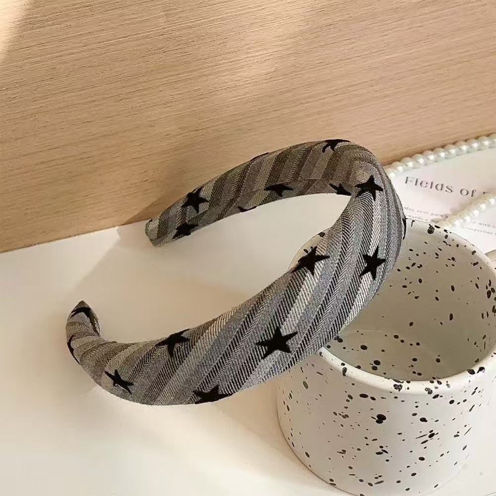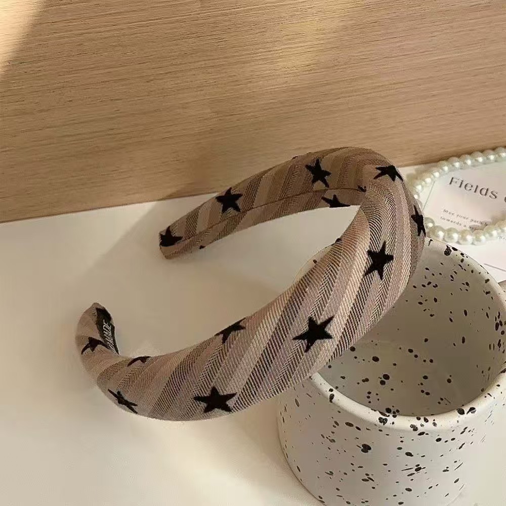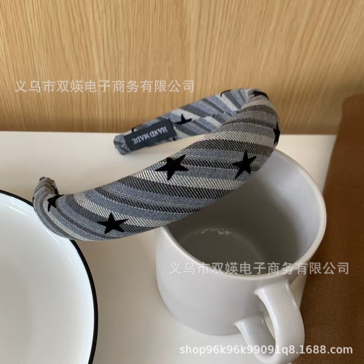 스타 스트라이프 헤드 밴드 여자 프랑스 하이 엔드 센스 와이드 브릴 스폰지 헤어 클립 올 매치 가을과 겨울 하이 크랜얼 탑 헤드 밴드