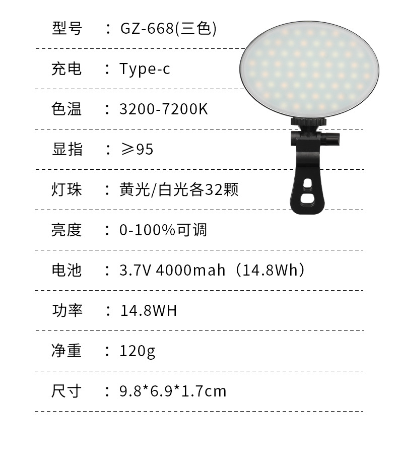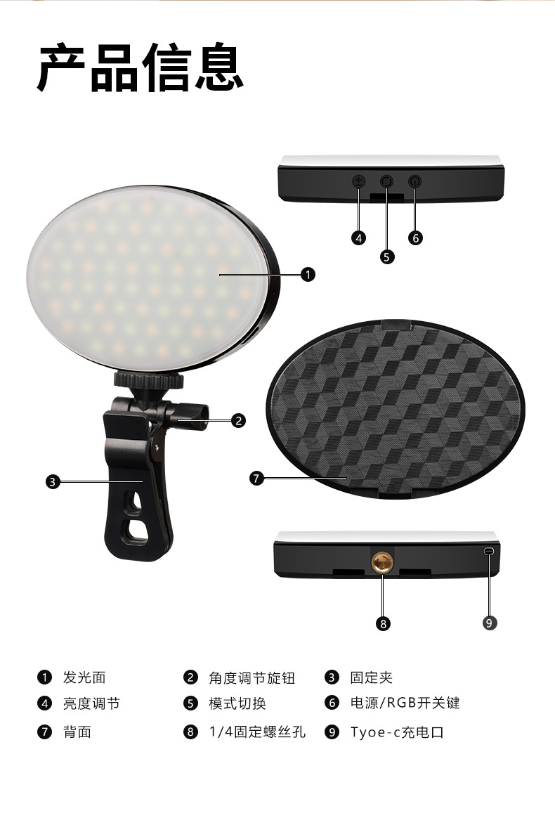 LED 휴대 전화 클립 조명 보충 라이브 셀카 미니 조명 보충 유물 앵커 사진 조명 보충