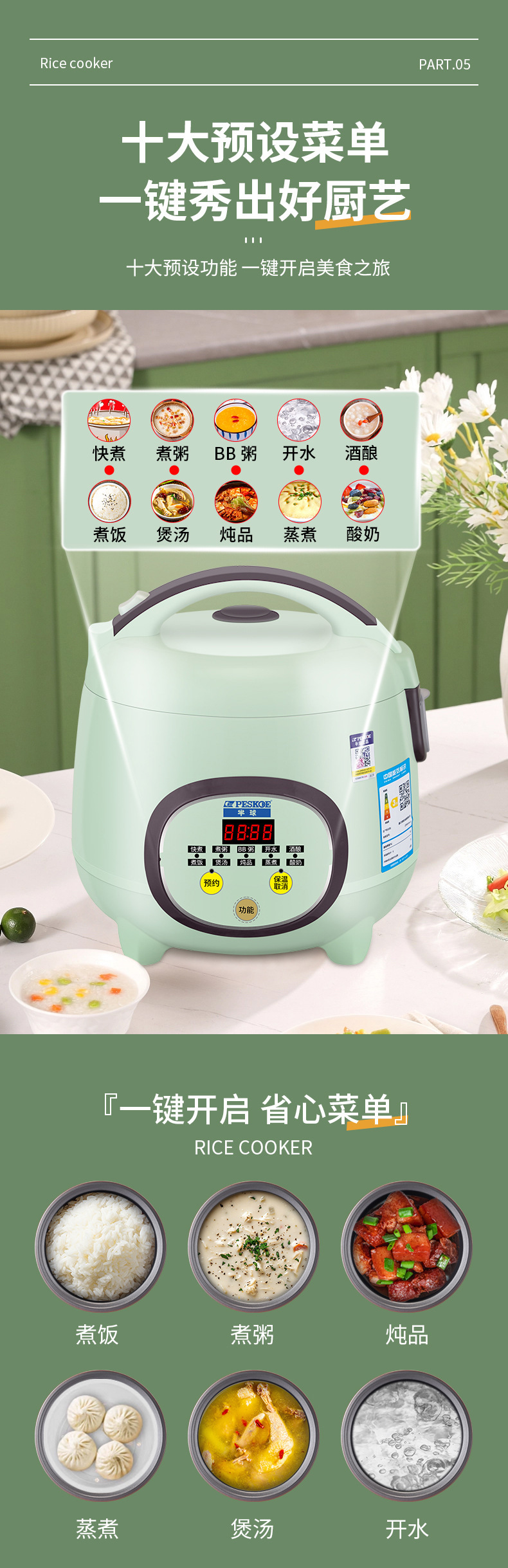 • 정품 반구형 4리터 700W 세라믹 글레이즈 라이너 4-6인용 12그릇 쌀기계식 모델