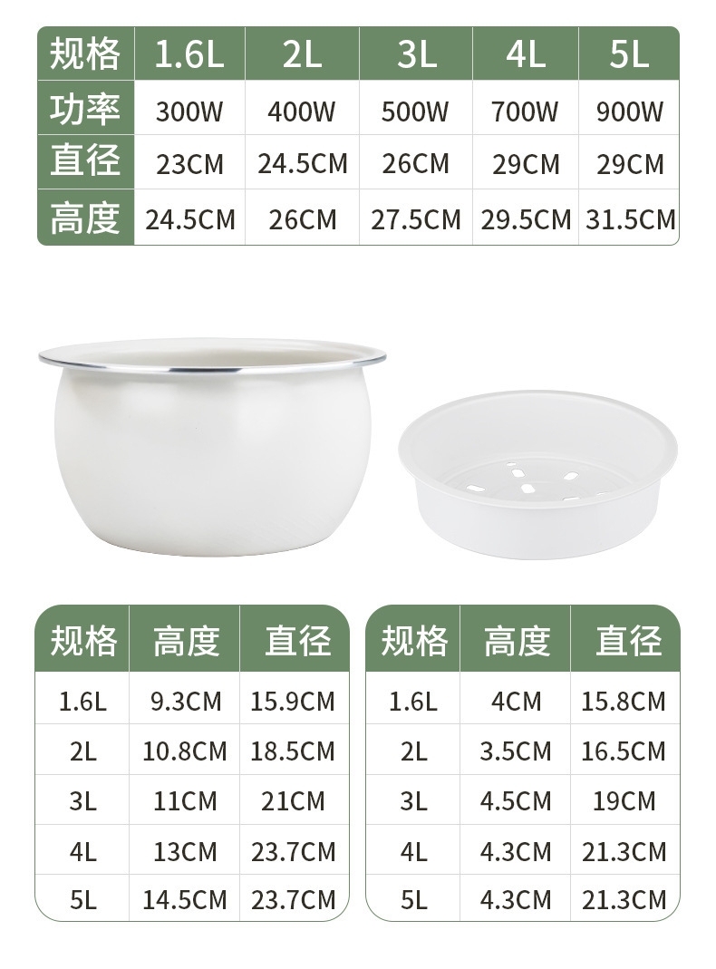 • 정품 반구형 1.6리터 300W 세라믹 글레이즈 라이너 1-2인용 밥 3그릇 기계식 모델