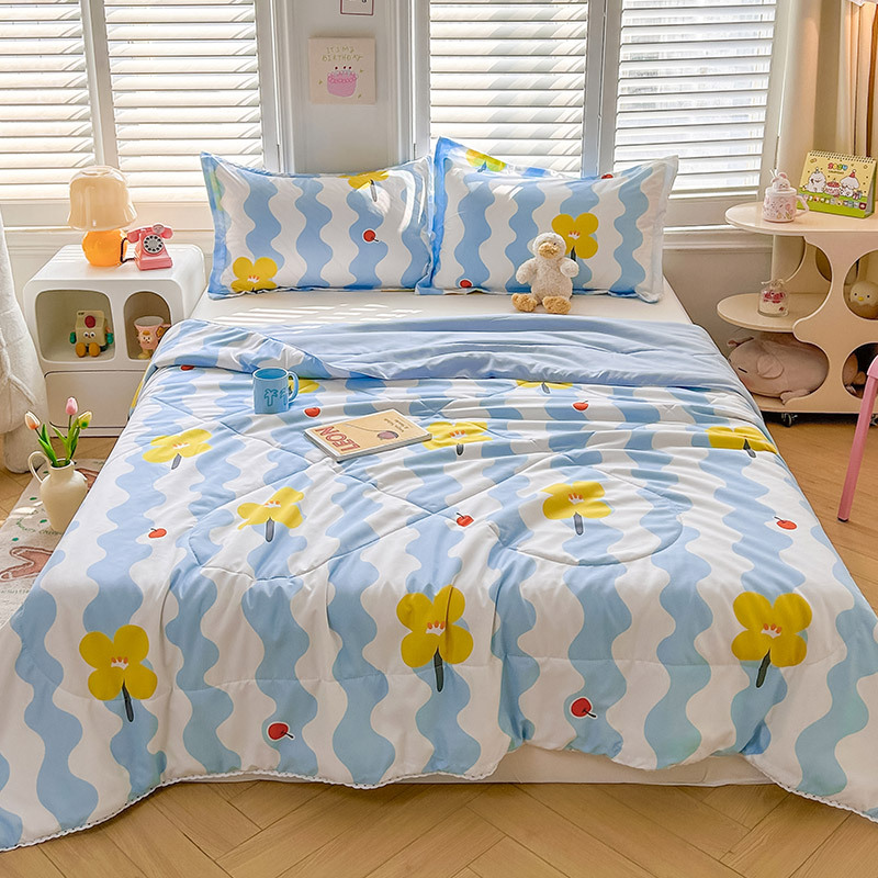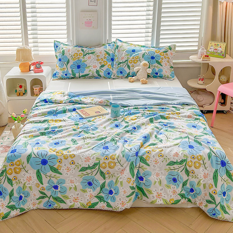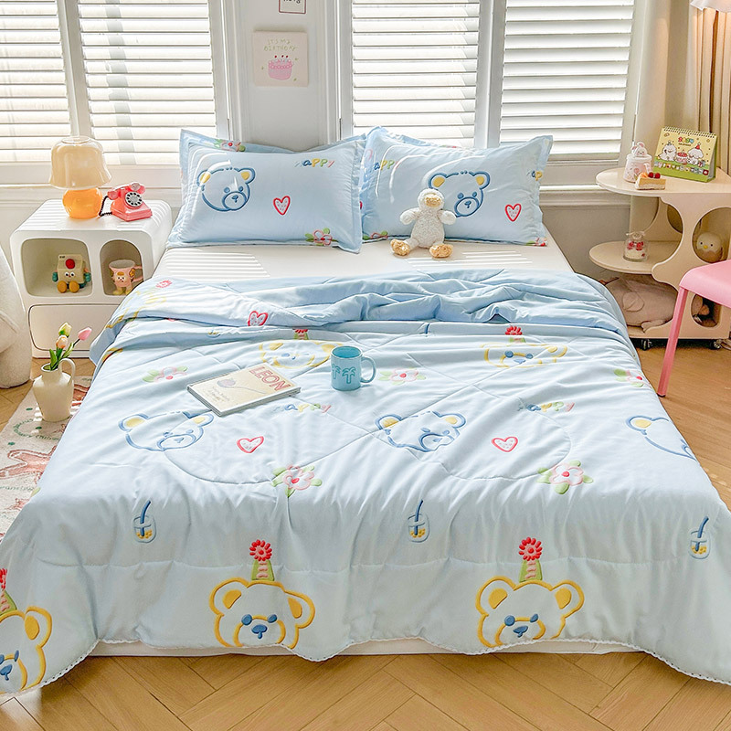 여름 시원한 이불 씻기는면 에어컨 이불 봄과 가을 얇은 이불 여름 이불 세척 가능한 어린이 이불 가정 학생 기숙사