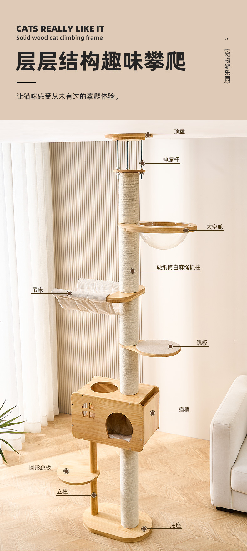단단한 나무 고양이 등반 프레임 고양이 둥지 고양이 나무 통합 가정용 비 공간 고양이 등반 프레임 고양이 점프 플랫폼 고양이 등반 기둥 Tongtianzhu