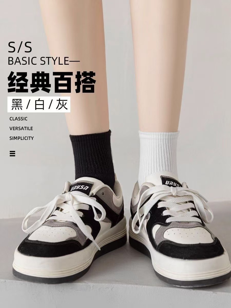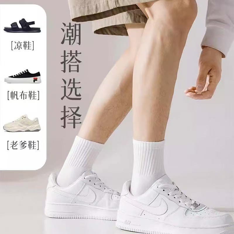 흑백 중간 배럴 남성과 여성의 봄과 가을 양말 스타일 올 매치 단색 스포츠 짧은 탈취제 통기성 양말