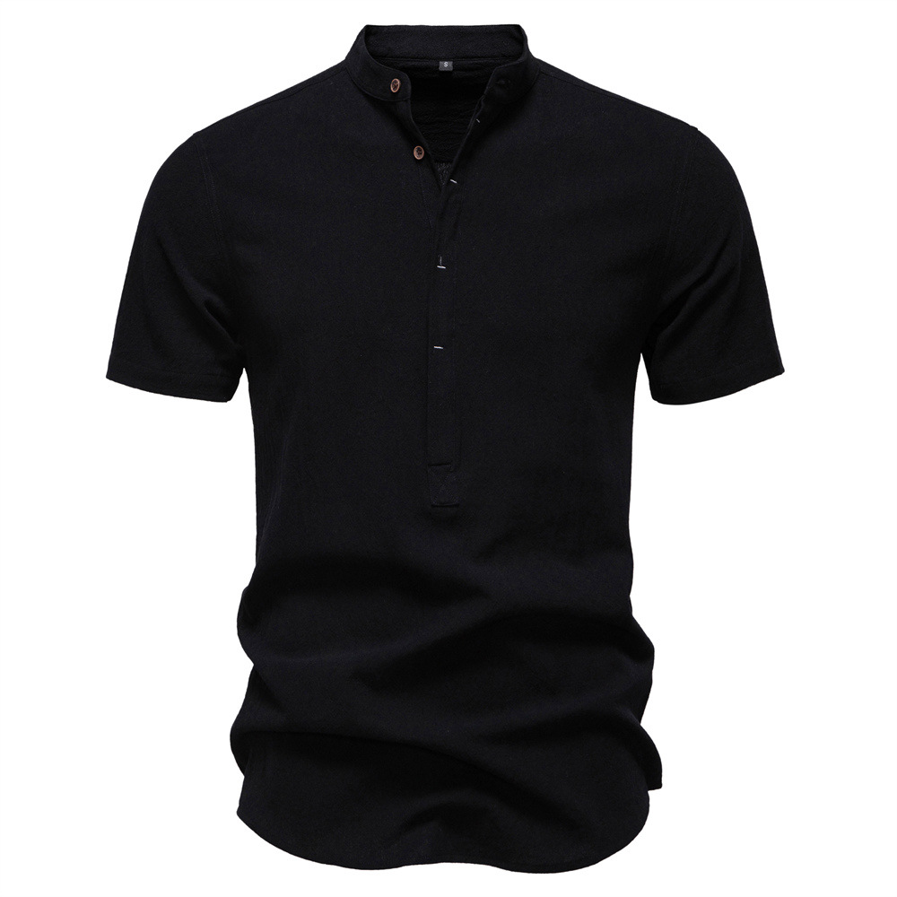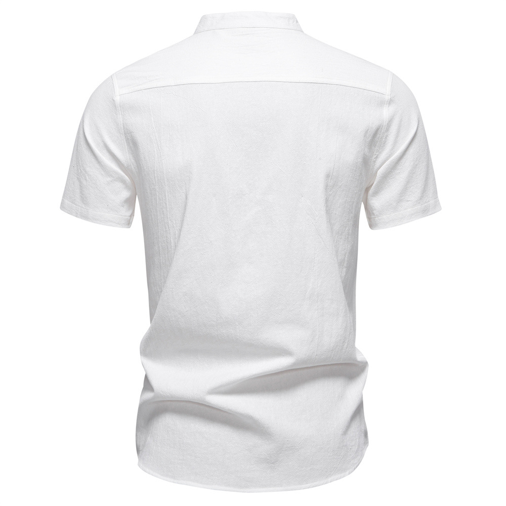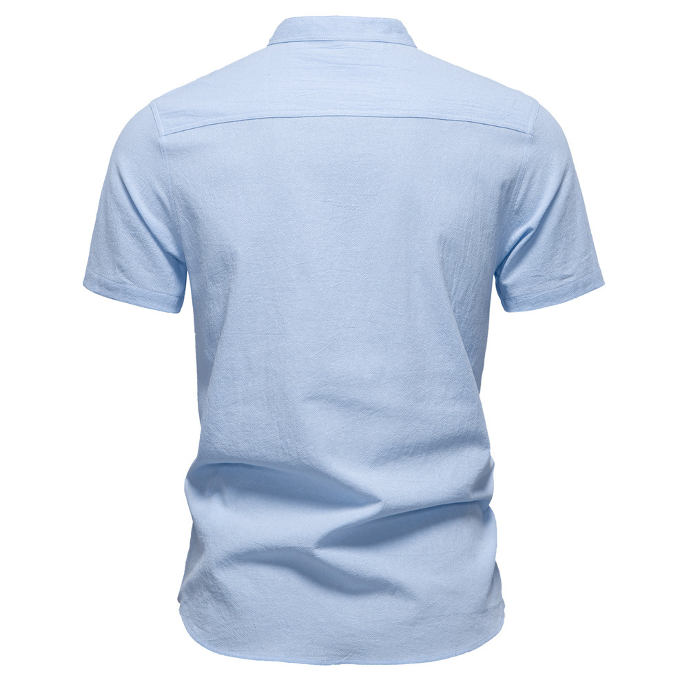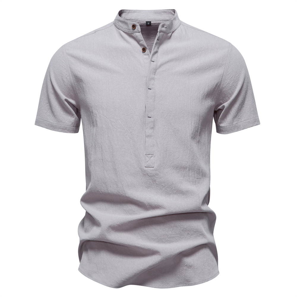 2025 년 여름 새로운 국경 사업 캐주얼 셔츠 남자 반팔 면 리넨 셔츠 칼라 면 셔츠