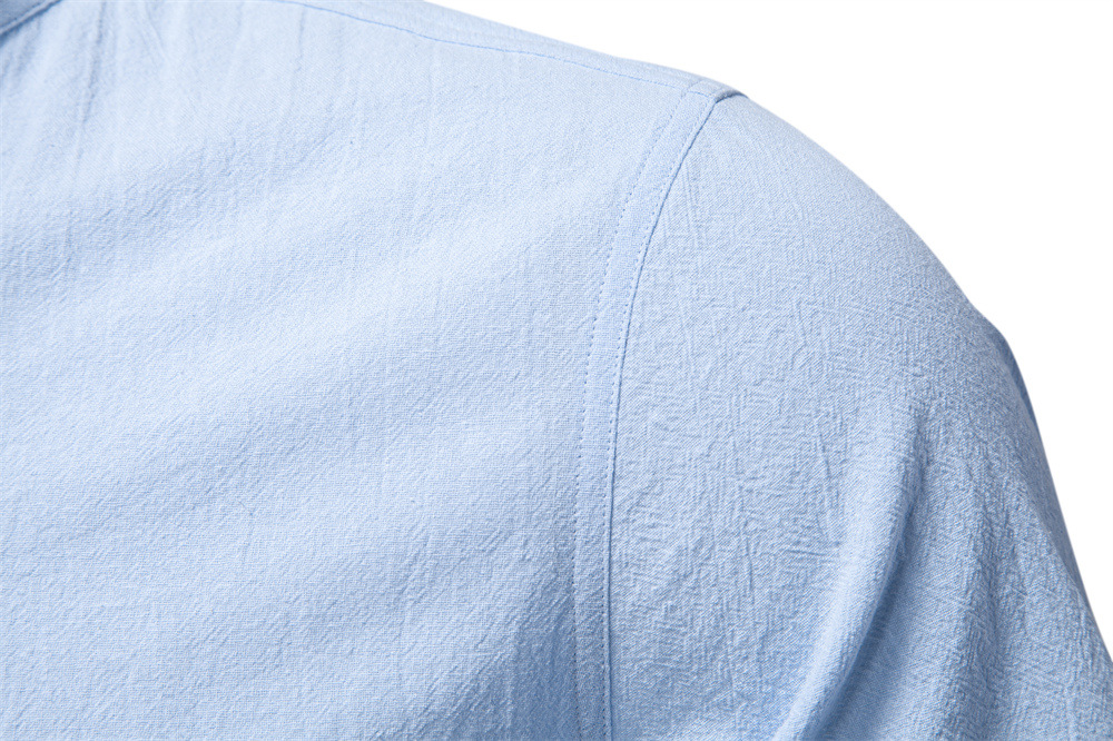 2025 년 여름 새로운 국경 사업 캐주얼 셔츠 남자 반팔 면 리넨 셔츠 칼라 면 셔츠스토어 가기