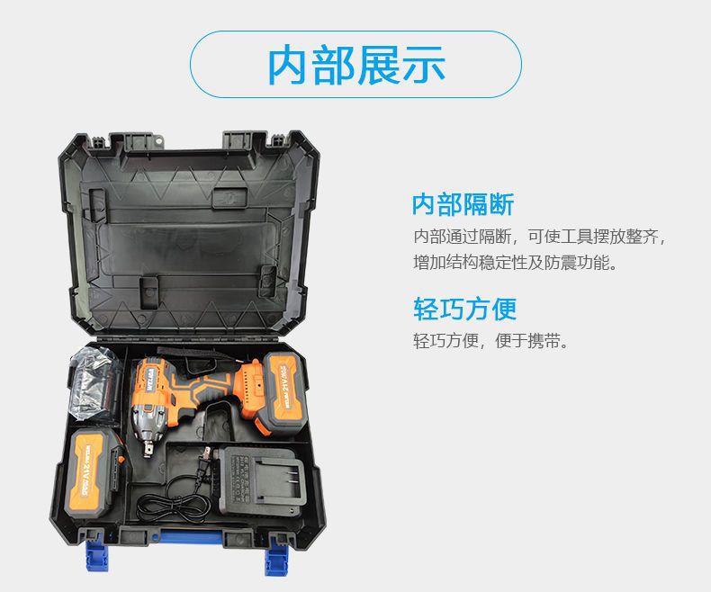 • 전기 렌치 플라스틱 상자에는 전기 2개를 담을 수 있습니다.