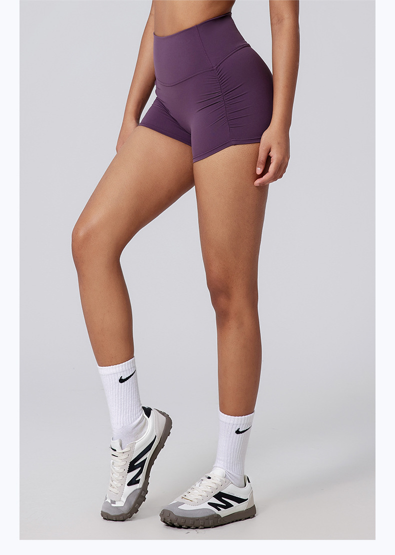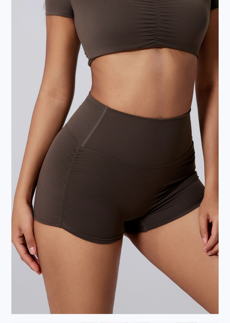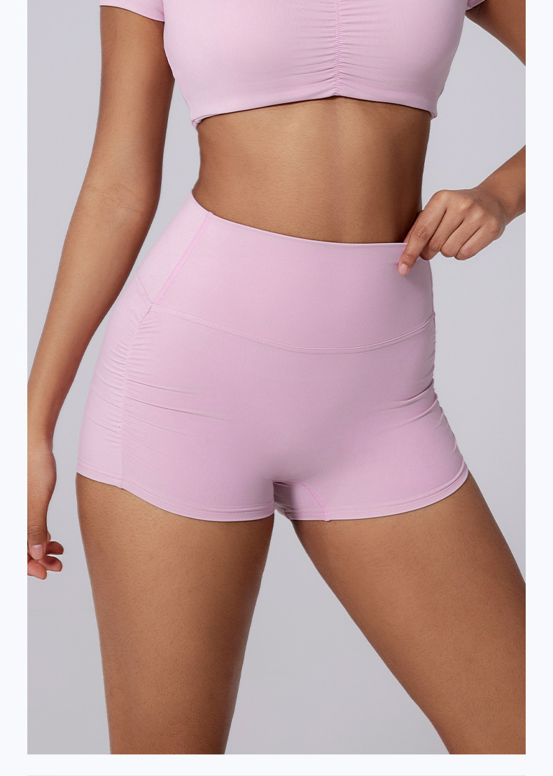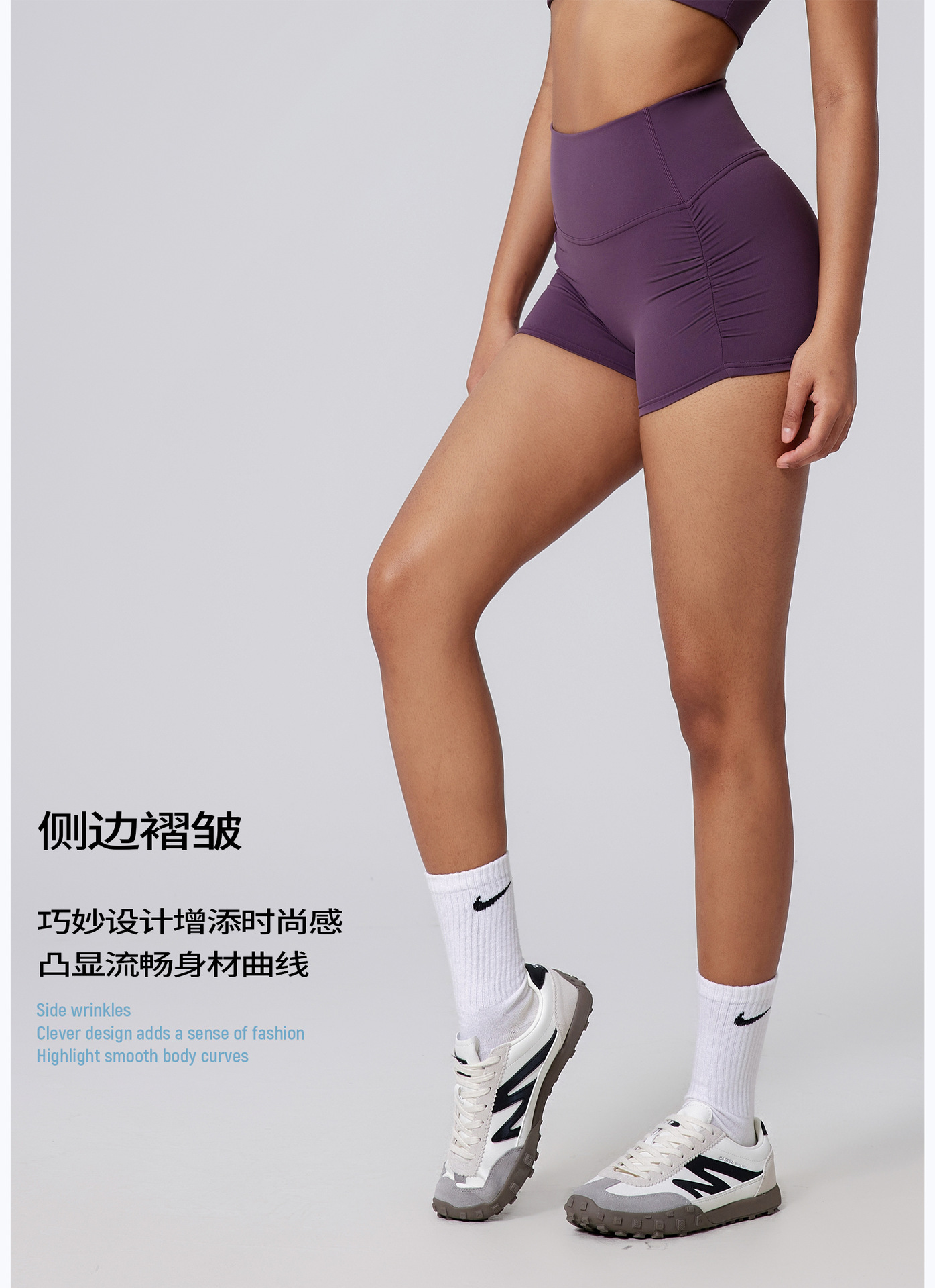 국경 간 구름 감각 이중 갈기 요가 반바지 포장 된 복부 플라스틱 허리 스포츠 바지 피트니스 주름 복숭아 엉덩이 외투 반바지 여성스토어 가기