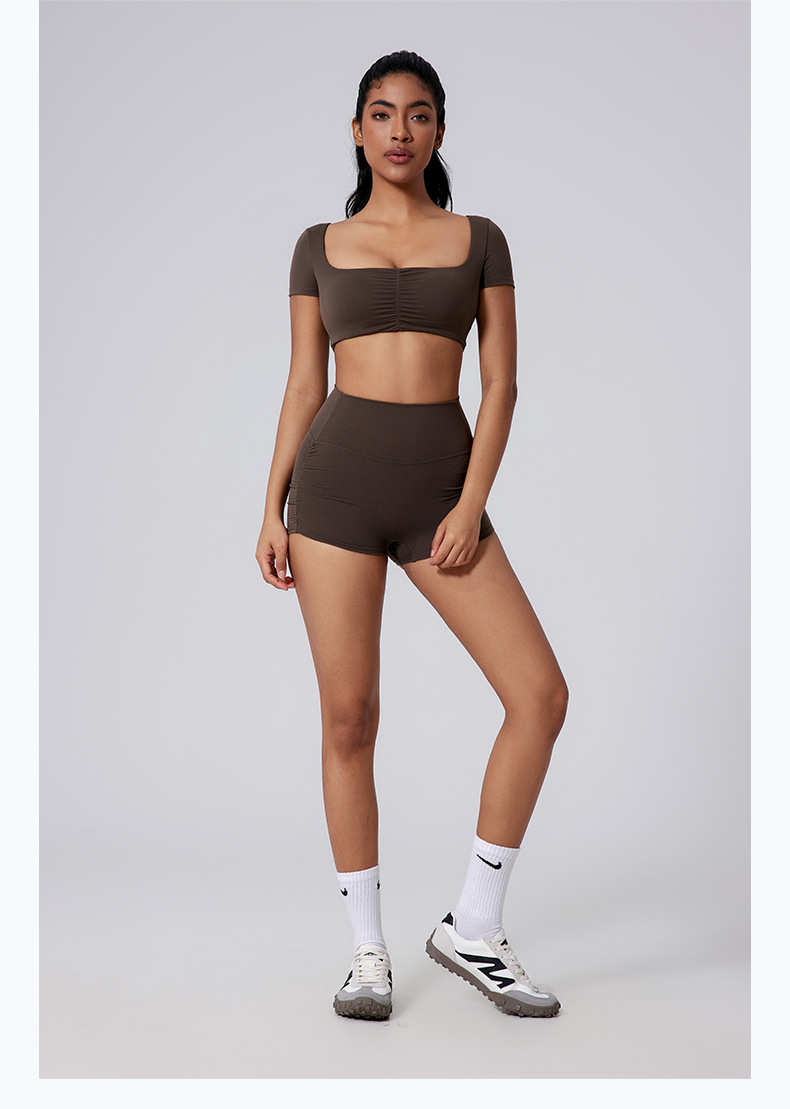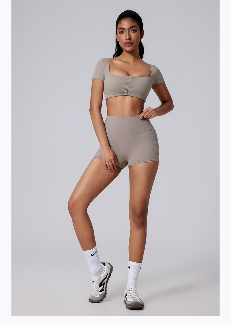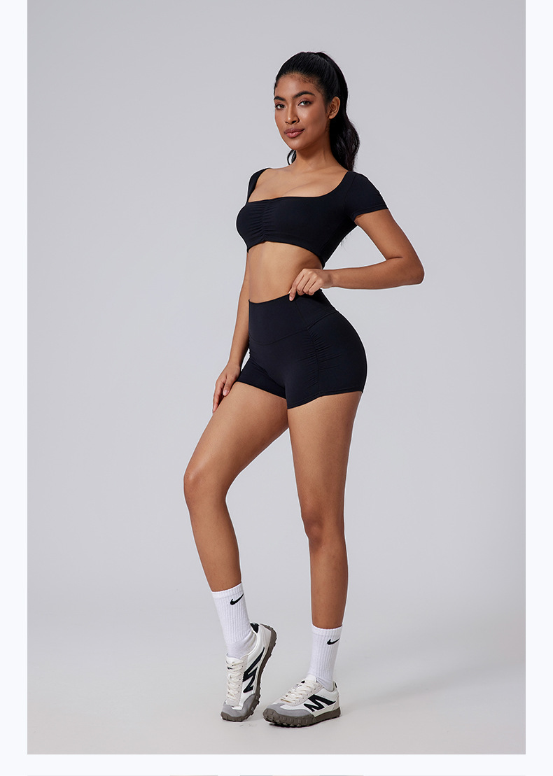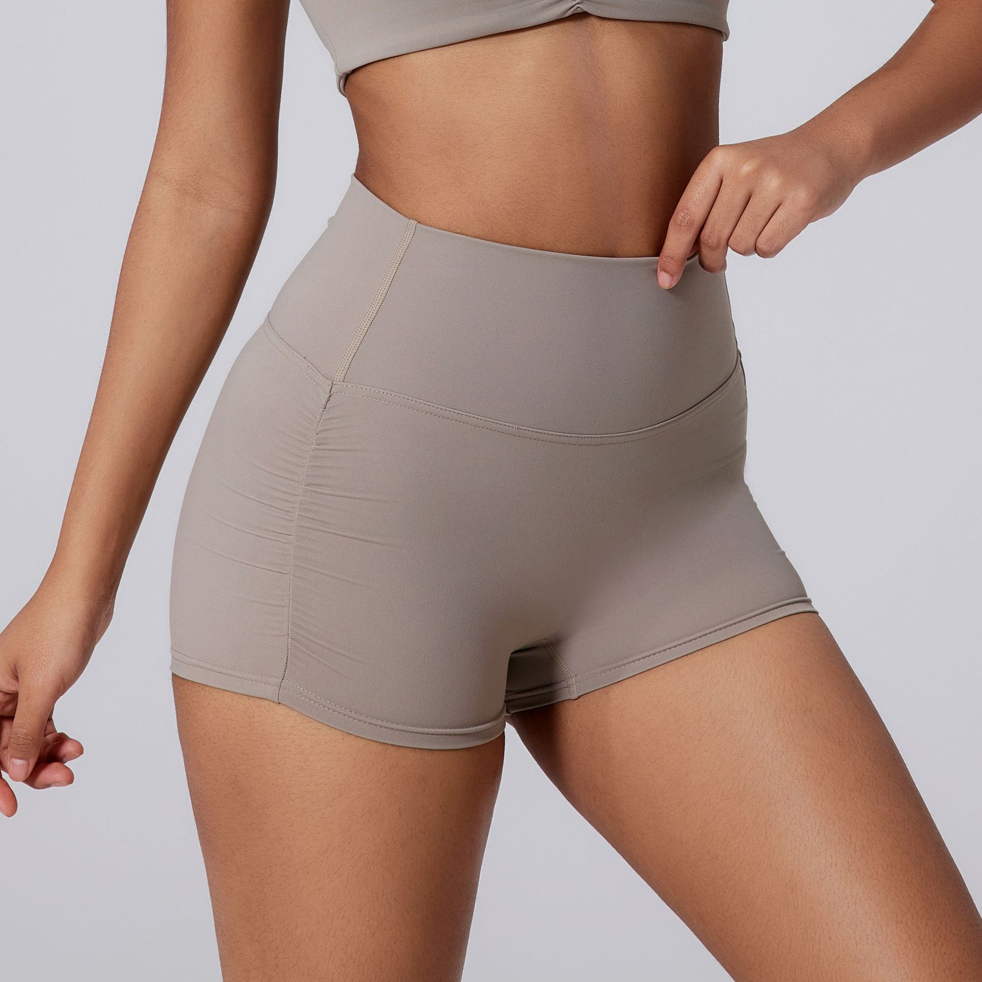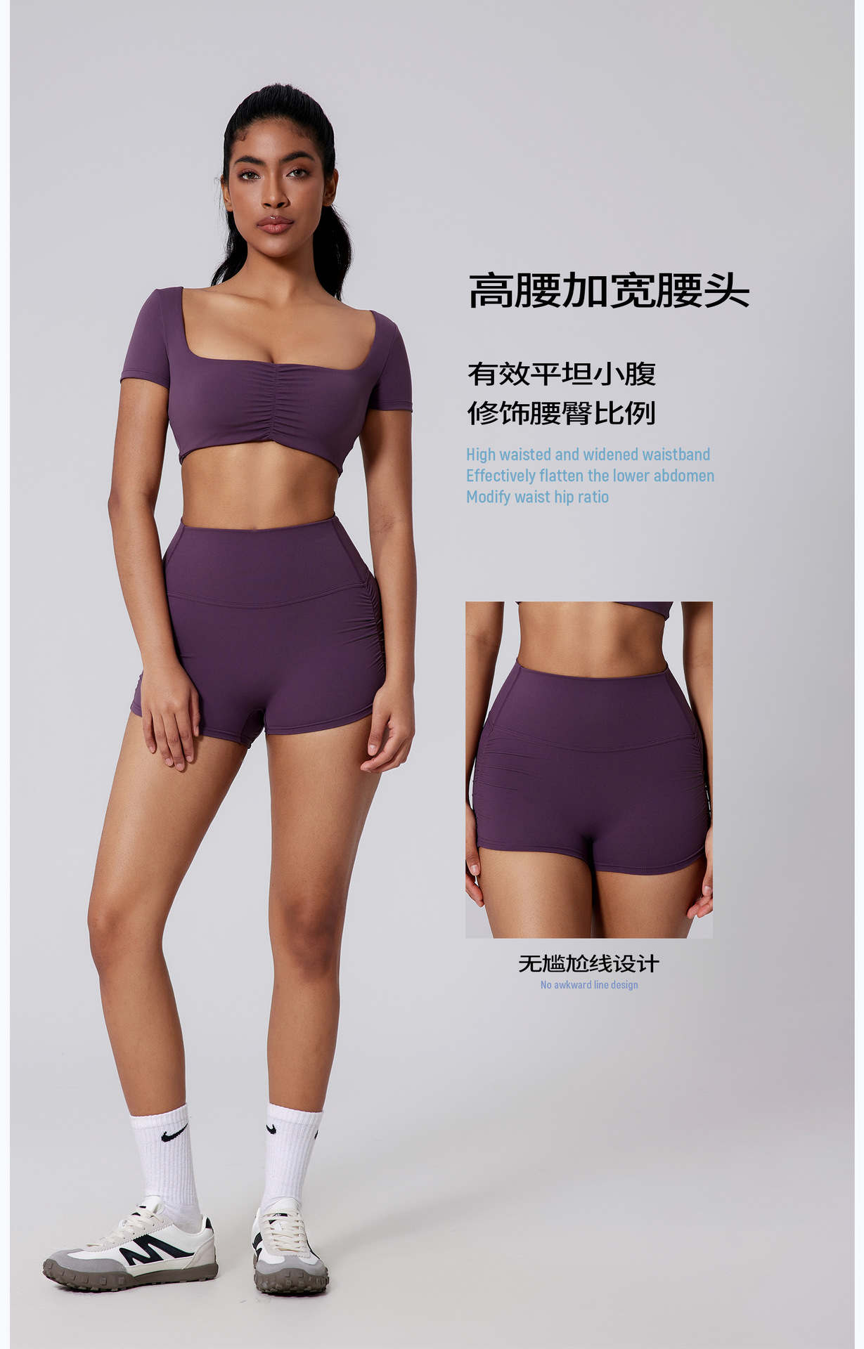 국경 간 구름 감각 이중 갈기 요가 반바지 포장 된 복부 플라스틱 허리 스포츠 바지 피트니스 주름 복숭아 엉덩이 외투 반바지 여성스토어 가기