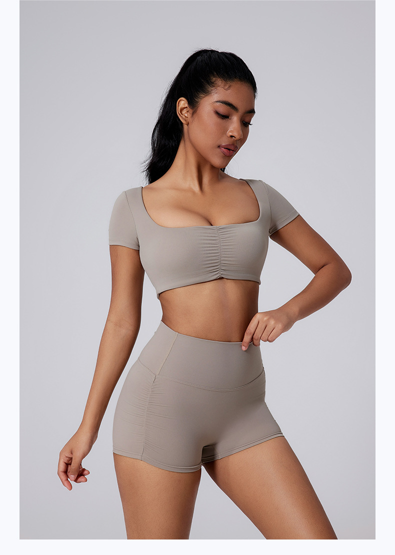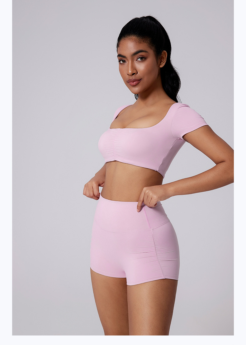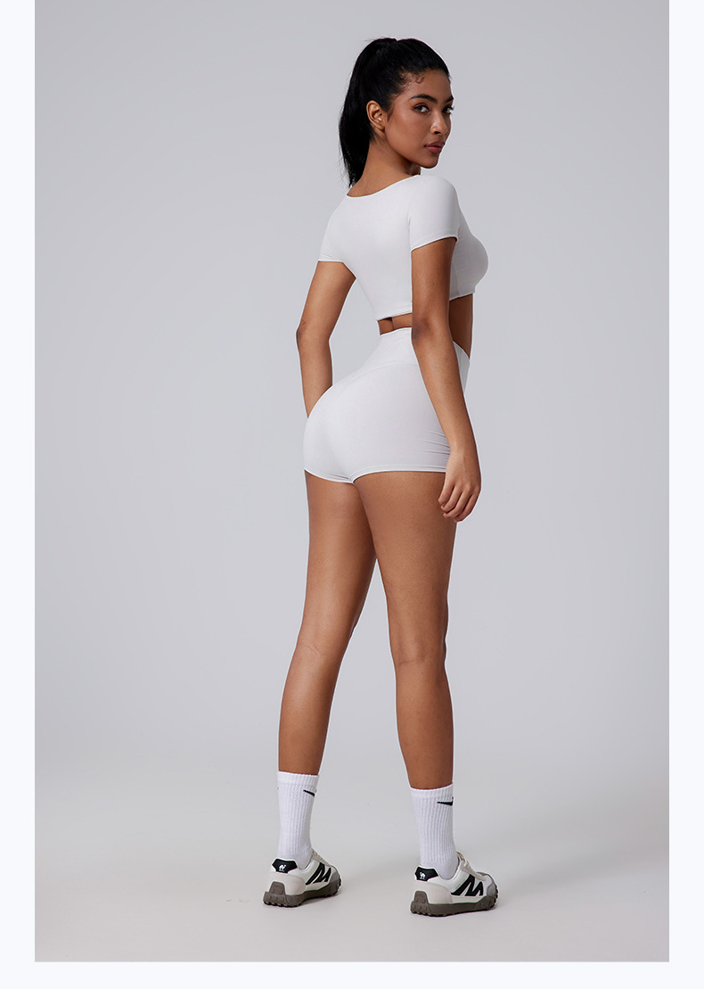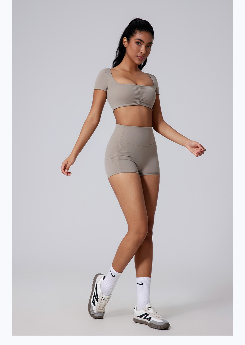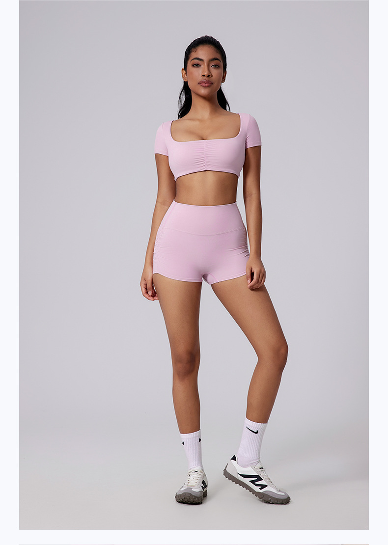 국경 간 구름 감각 이중 갈기 요가 반바지 포장 된 복부 플라스틱 허리 스포츠 바지 피트니스 주름 복숭아 엉덩이 외투 반바지 여성스토어 가기