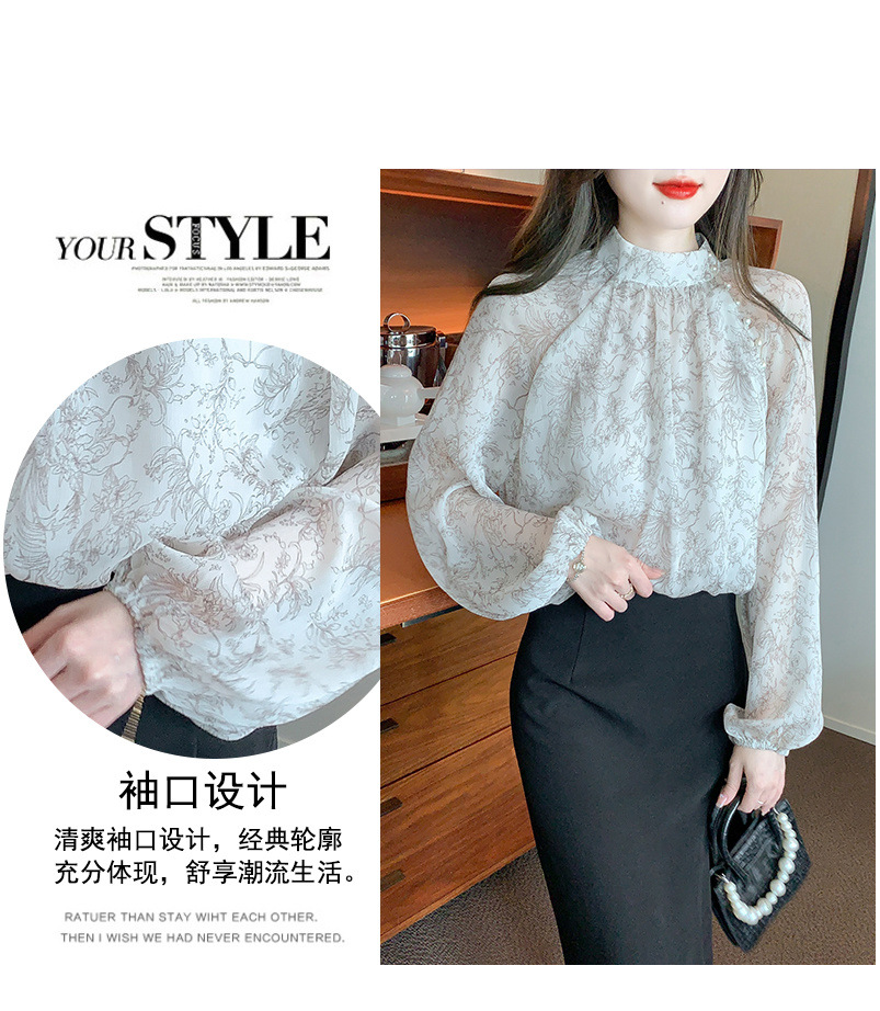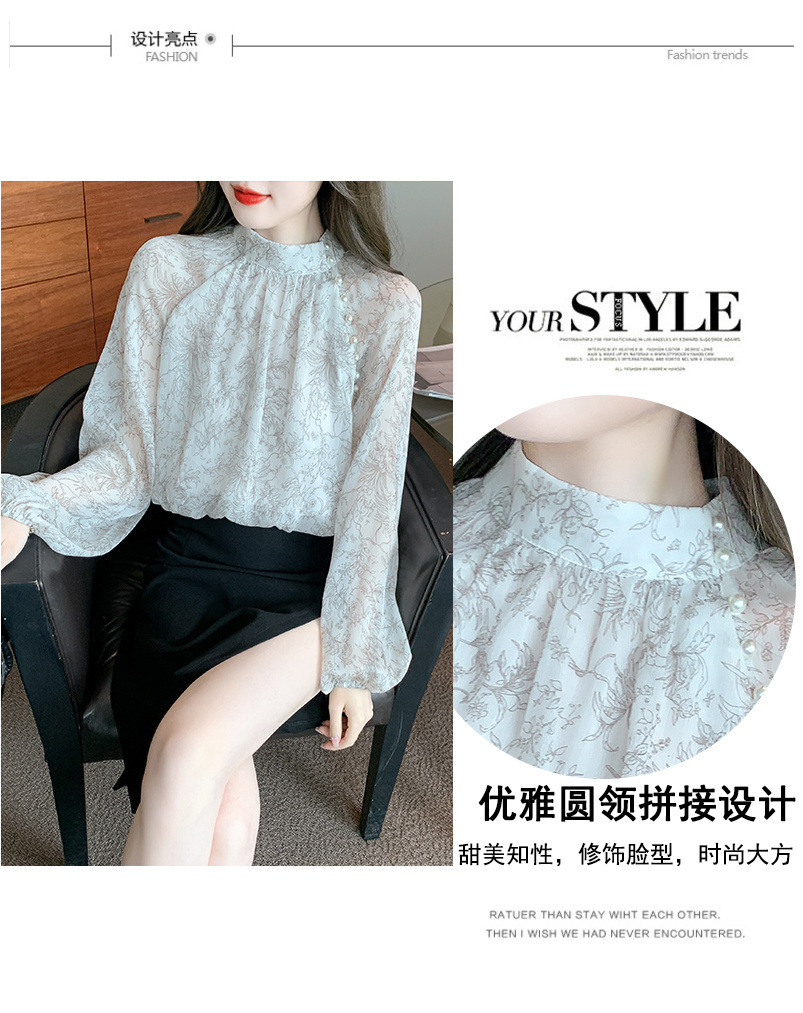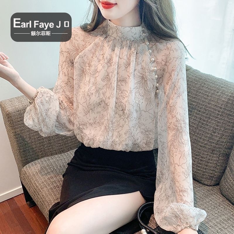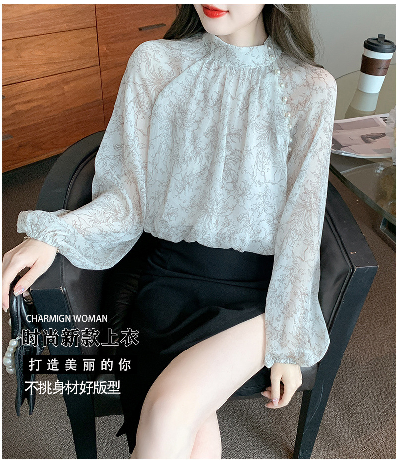 프랑스 꽃 쉬폰 셔츠 세련된 구슬 장식 아름다운 탑 2024 봄 새로운 여성 의류스토어 가기