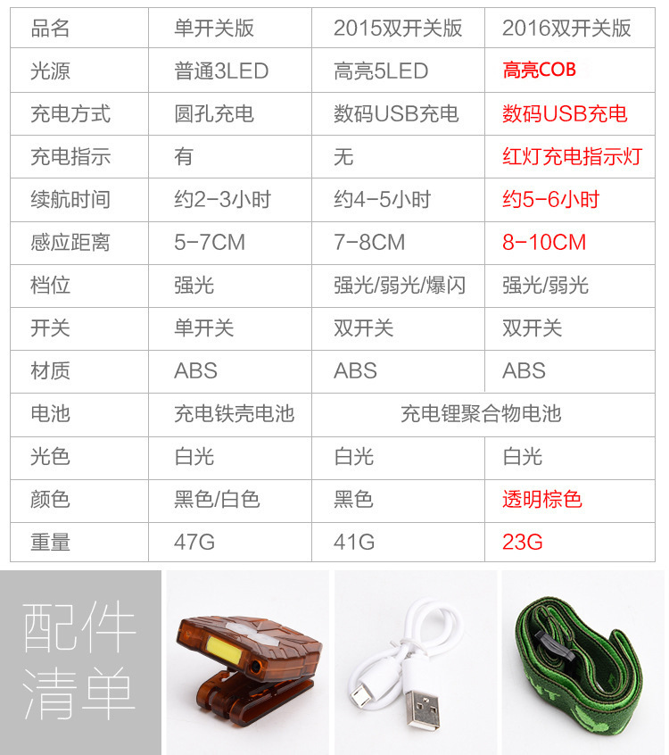 COB 센서 헤드라이트 야간 낚시용 충전식 LED 클립온 램프 낚시등 방수 헤드라이트 충전식 헤드라이트