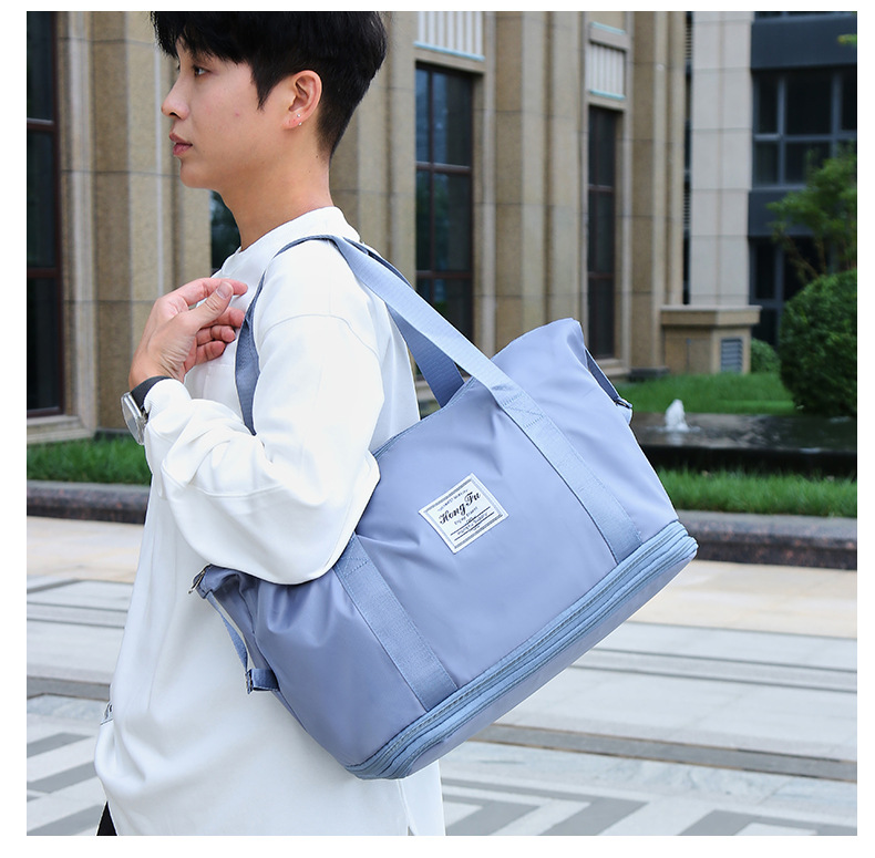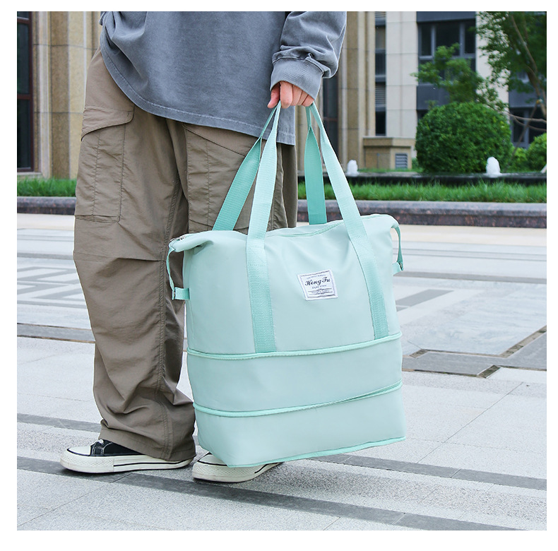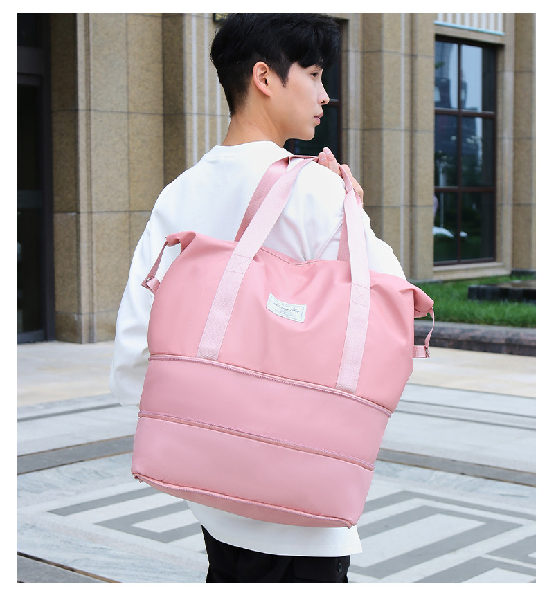 국경을 넘는 새로운 스타일의 간단한 여행 가방 두 배 레이어 확장 가능한 대용량 가방 여성 건조하고 젖은 별도의 요가 체육관 가방스토어 가기