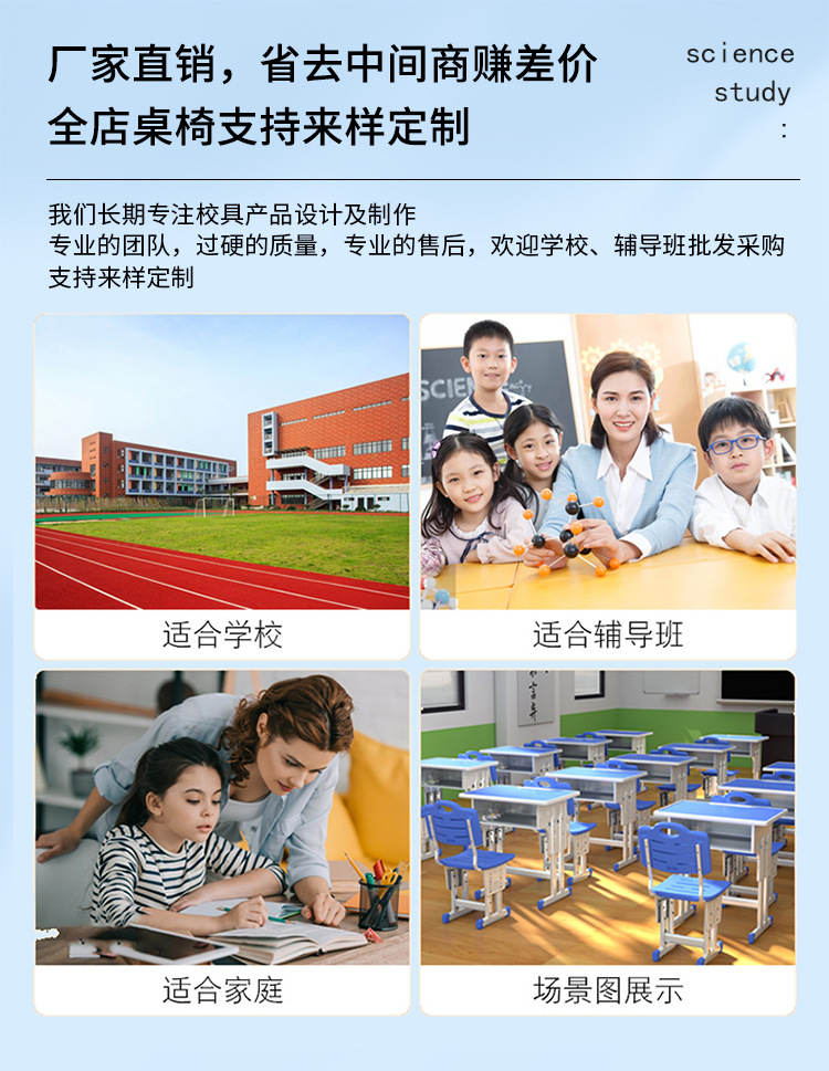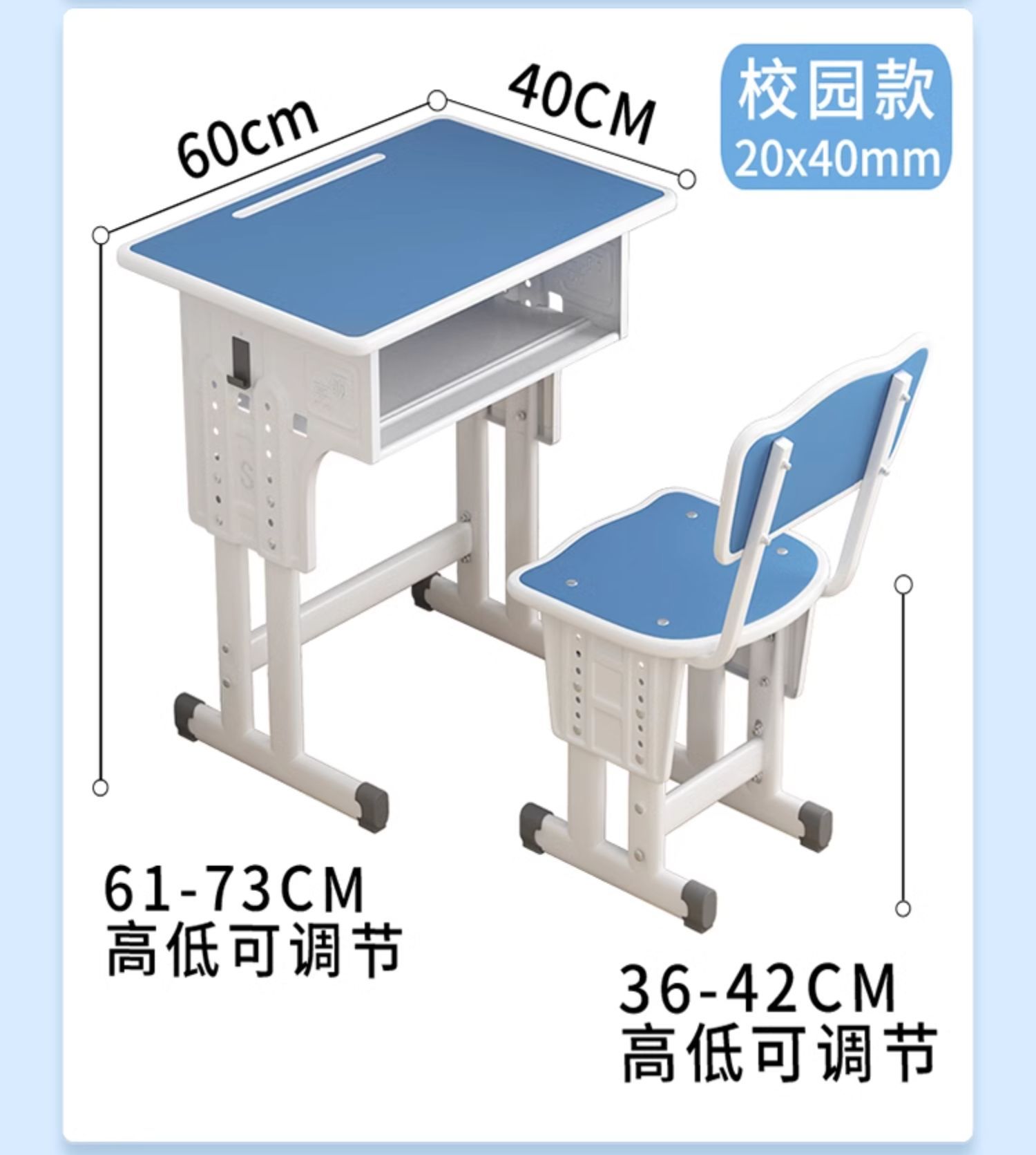 • [기간 한정 손실] 캠퍼스 모델 [4cm 두꺼운 철 기둥] 이중 기둥 책상과 의자 + 파란색