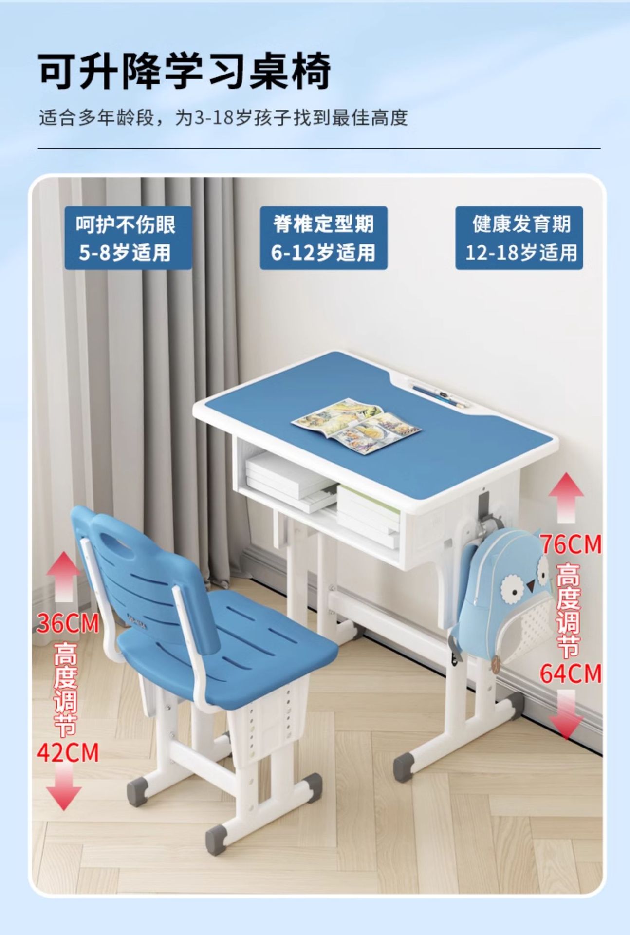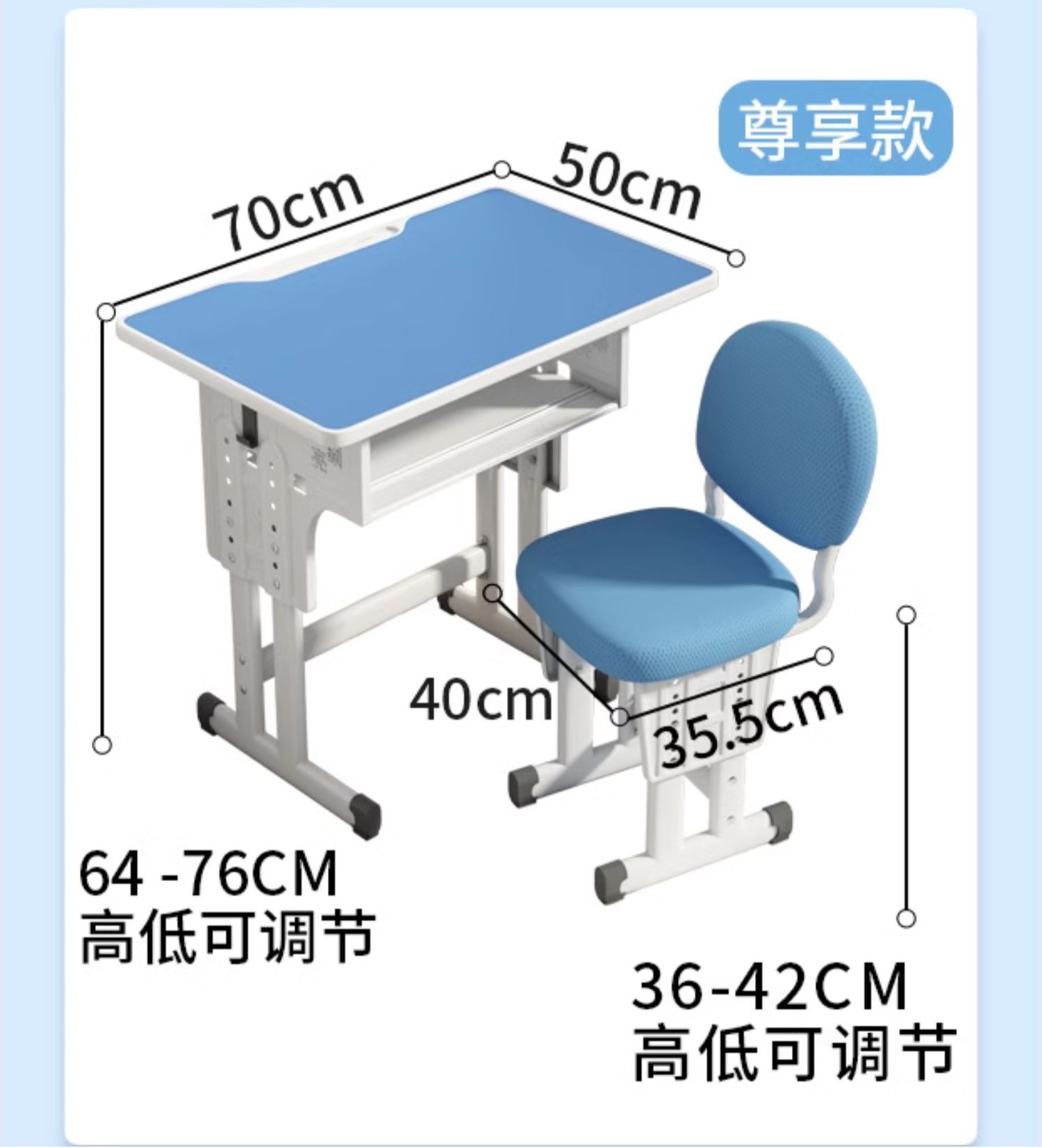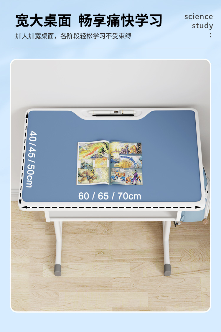• 전용 70*50 대형 데스크탑 + 스펀지 의자 + 스카이블루