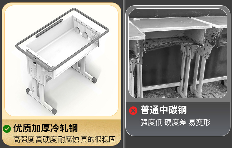 • [기간 한정 손실] 캠퍼스 모델 [4cm 두꺼운 철 기둥] 이중 기둥 책상과 의자 + 회색