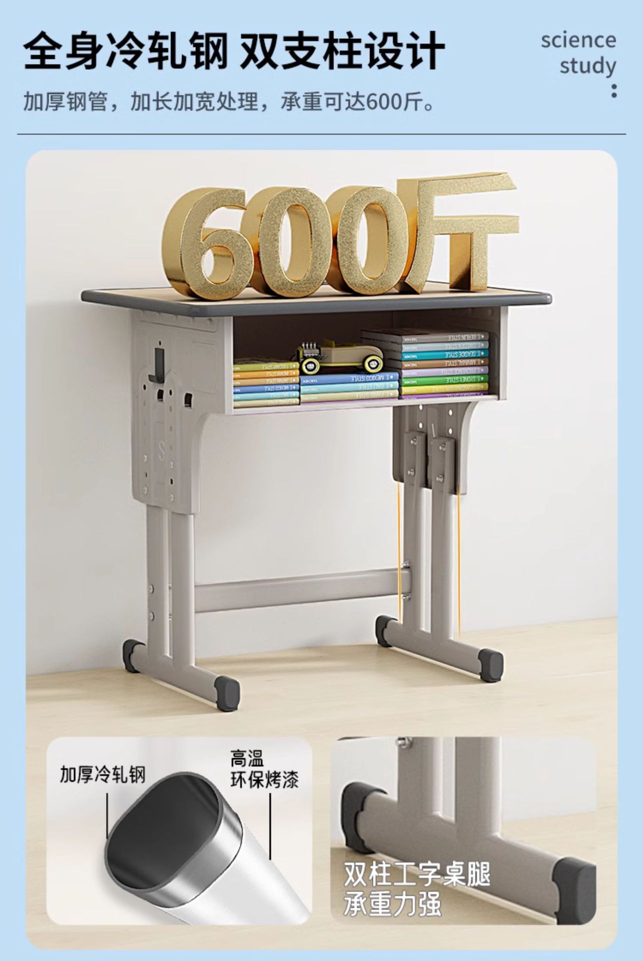 • 캠퍼스 모델 [5cm 두께의 두꺼운 철 기둥] 이중 기둥 책상과 의자 + 파란색