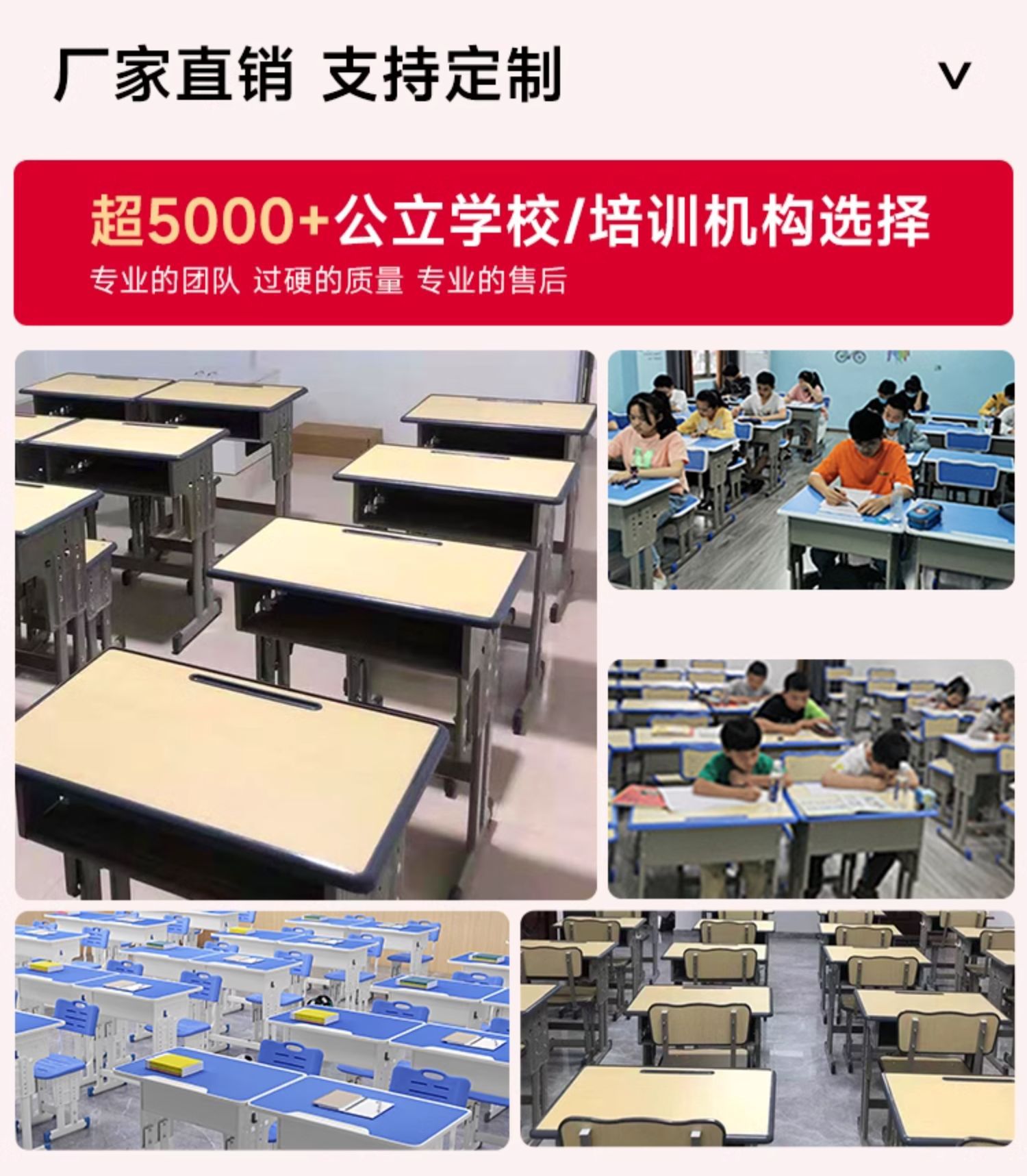 • 캠퍼스 모델 [5cm 두께의 두꺼운 철 기둥] 이중 기둥 책상과 의자 + 핑크