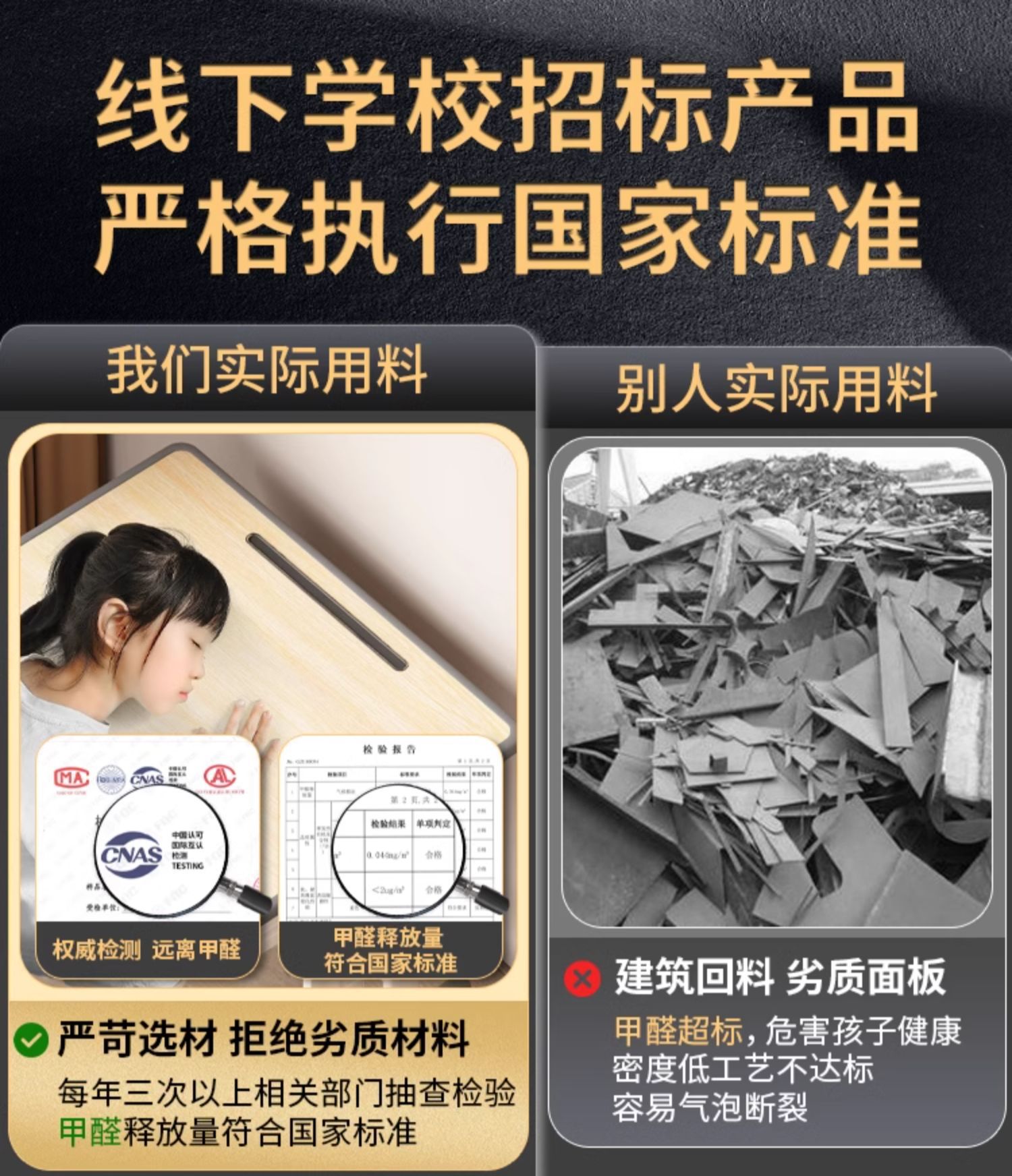 • 캠퍼스 모델 [5cm 두께의 두꺼운 철 기둥] 이중 기둥 책상 및 의자 + 참나무